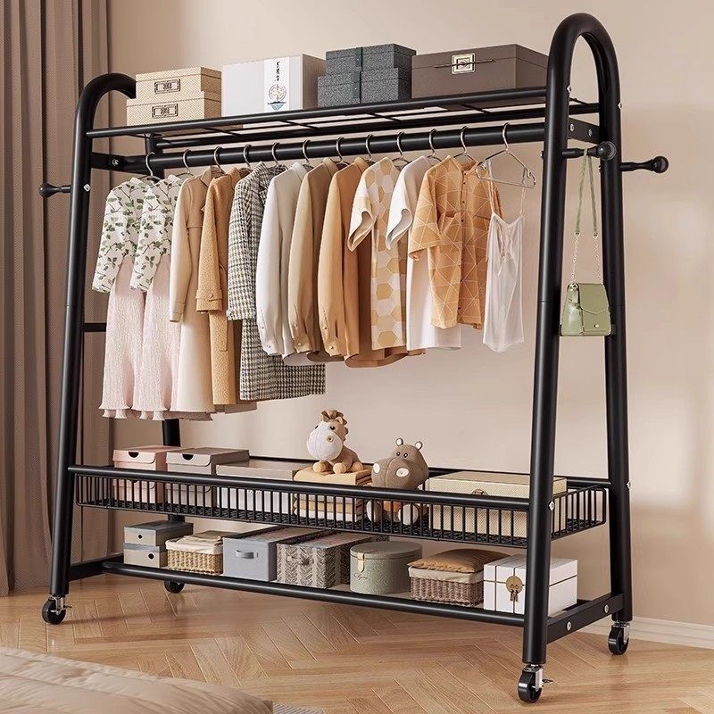 网红可移动挂衣架落地卧室家用室内衣服收纳置物架衣帽架客厅阳台