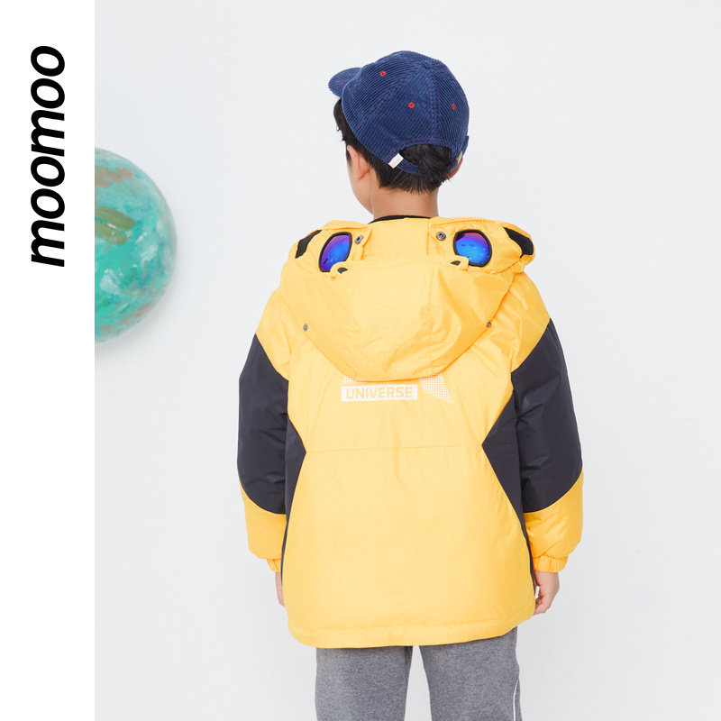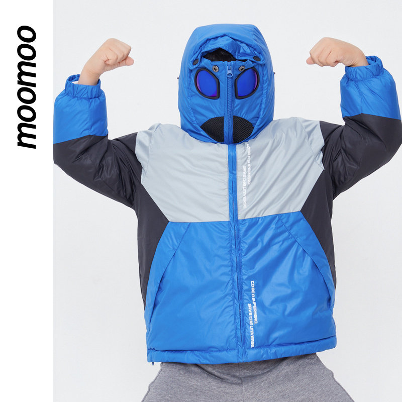 moomoo童装男童羽绒服秋冬装新款儿童潮流拼接羽绒服带眼镜面罩