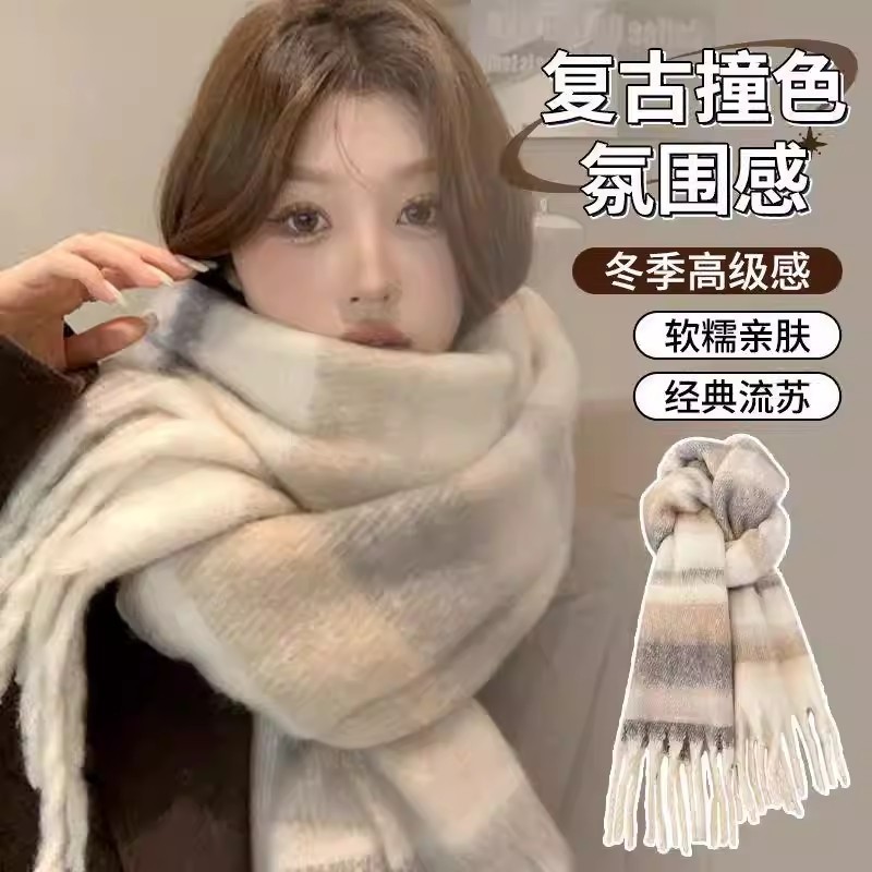 2025年冬季女款秋冬马海毛围巾披肩加厚保暖御寒高级氛围感新时尚