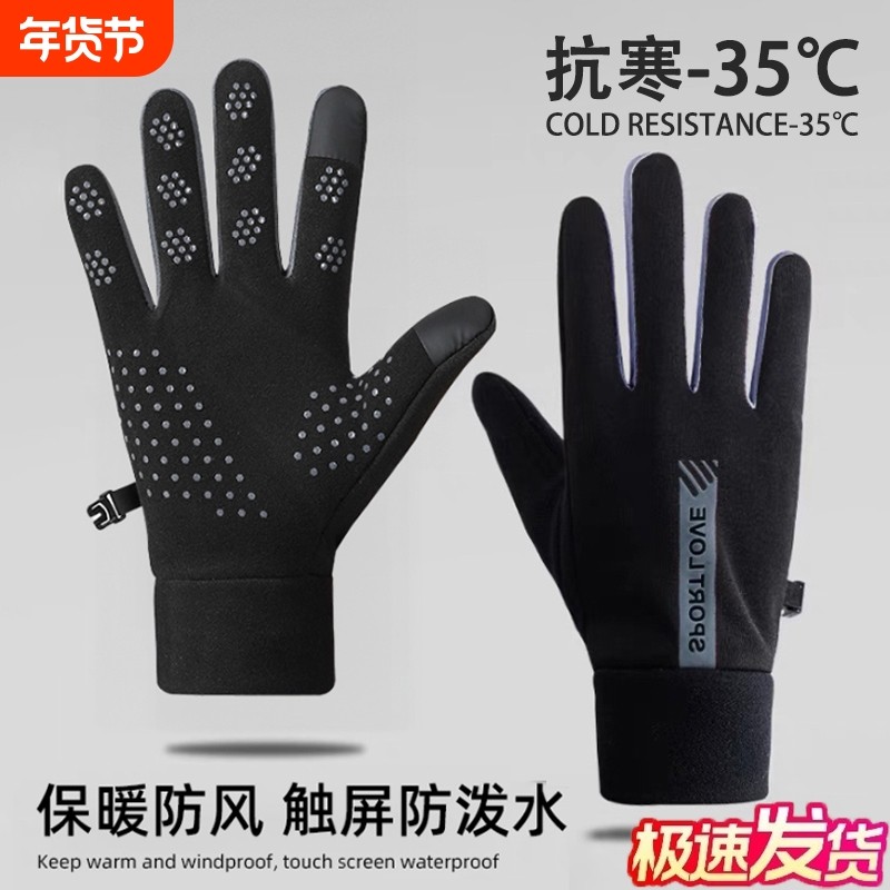 冬季保暖加厚骑行滑雪手套触屏摩托车加绒防水防风寒防滑户外防雨