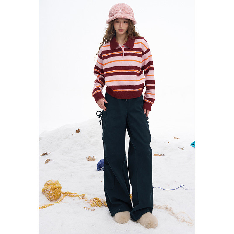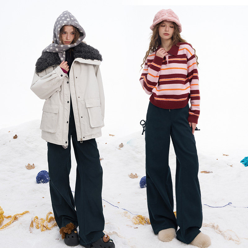 妖精的口袋高腰休闲工装裤女2025年冬季新款宽松显瘦百搭阔腿裤子
