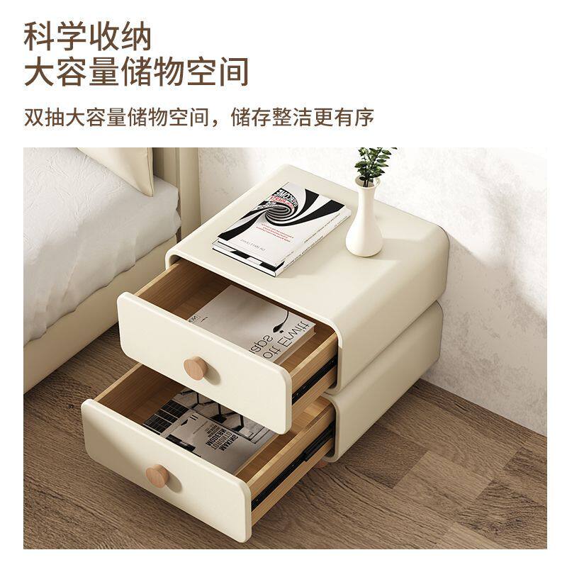c奶油风床头柜卧室实木皮质床边柜简约现代极简易免安装小型收纳