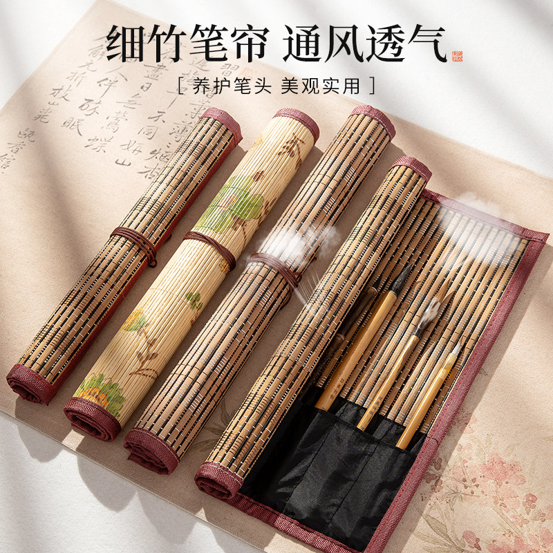 梅林笔庄毛笔笔帘书法毛笔专用收纳袋大容量竹制卷笔帘国画毛笔袋学生便携国风收纳卷帘文房四宝竹制毛笔帘子