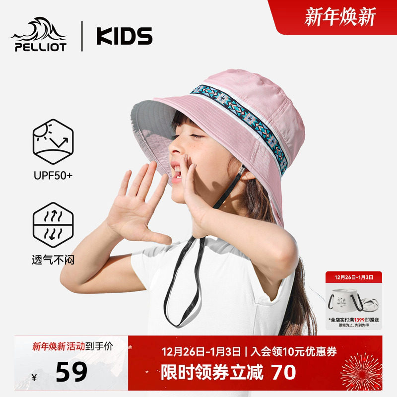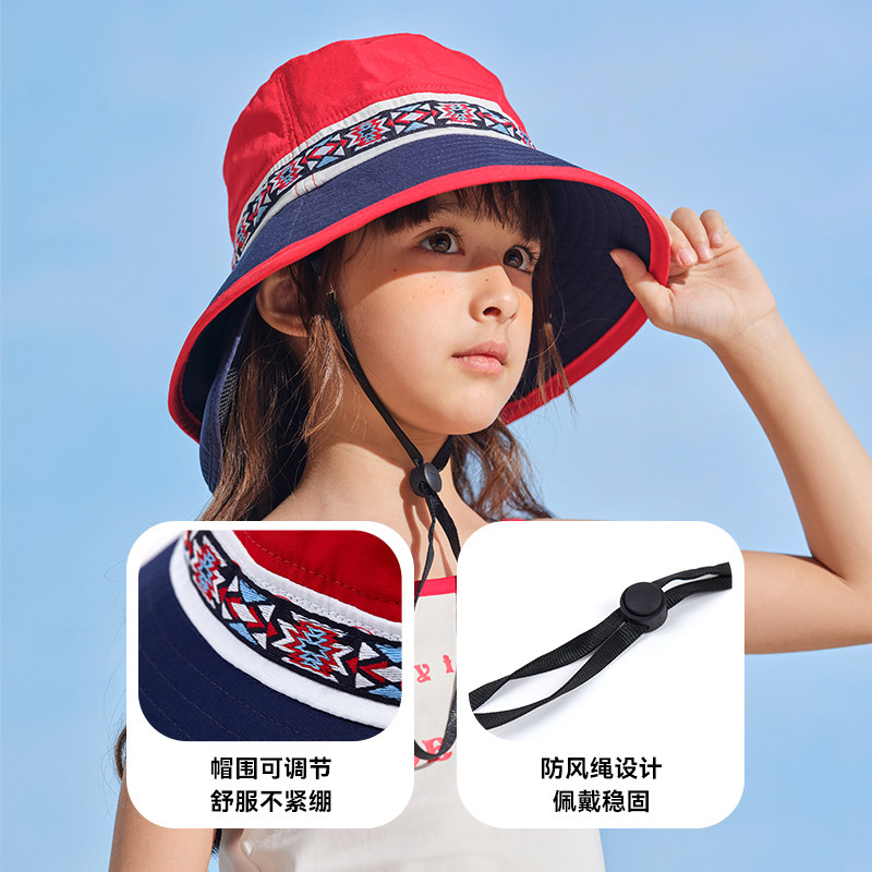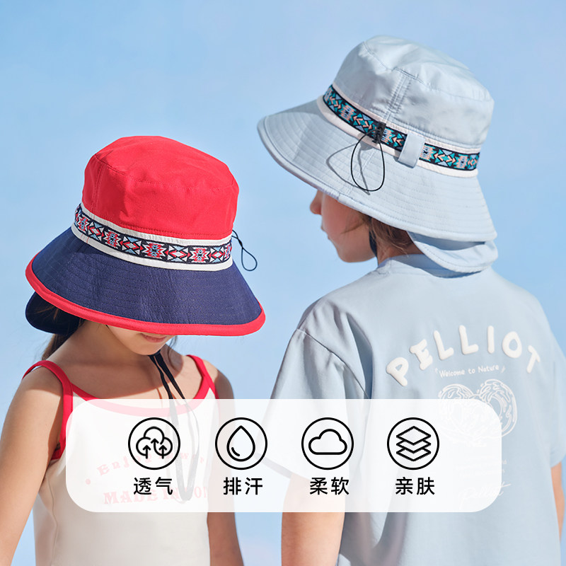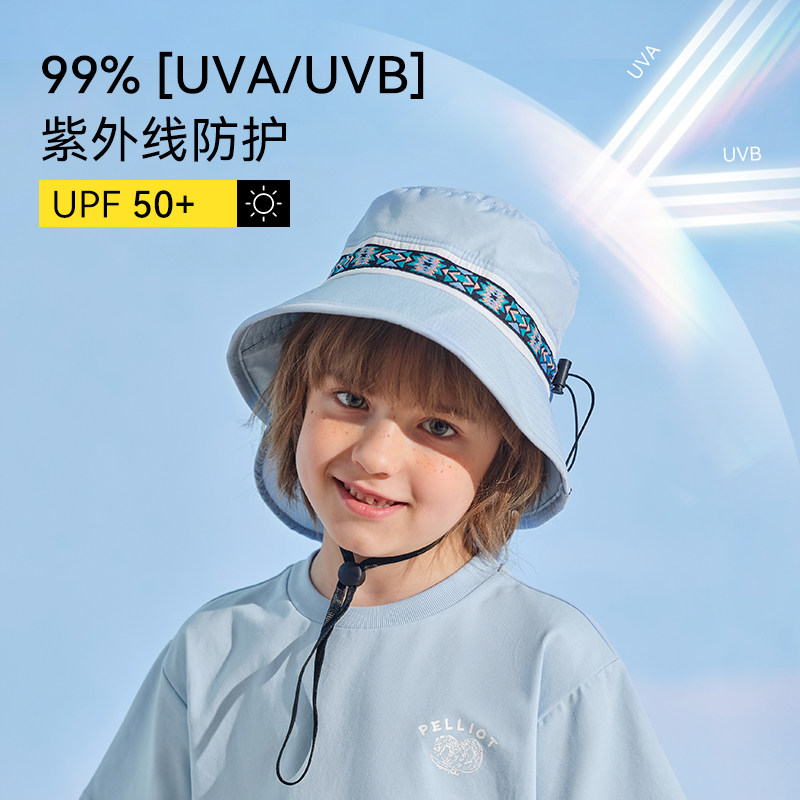 伯希和儿童防晒帽子宝宝遮阳帽防紫外线太阳帽男女童渔夫帽夏薄款
