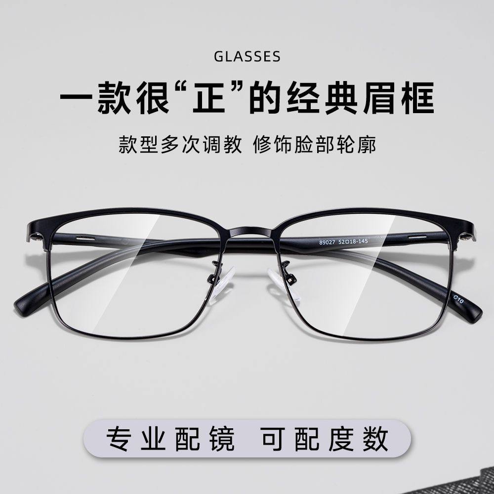 蔡司镜片配超轻钛架潮流眉框眼镜框架男款专业配近视度数防蓝光W