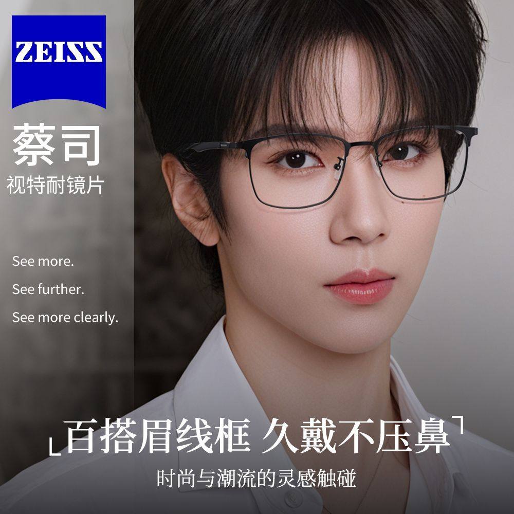 德国蔡司眼镜近视男眉框散光纯钛超轻镜片定制度数可配蓝光女镜框
