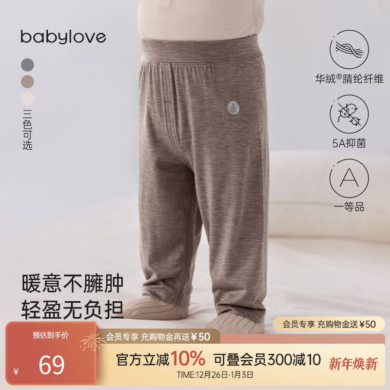 babylove婴幼儿睡裤秋冬休闲家居裤纯色打底裤宝宝高腰保暖秋裤