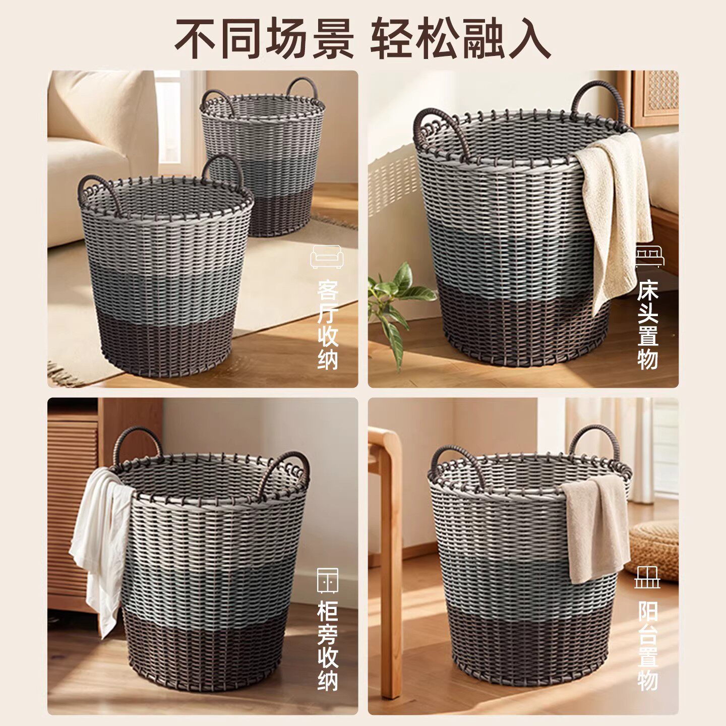 脏衣篓家用高颜值装脏衣服收纳筐大容量仿藤编脏衣篮卫生间收纳框
