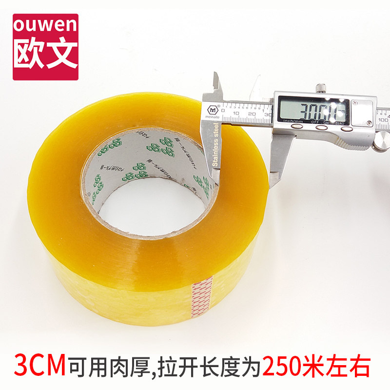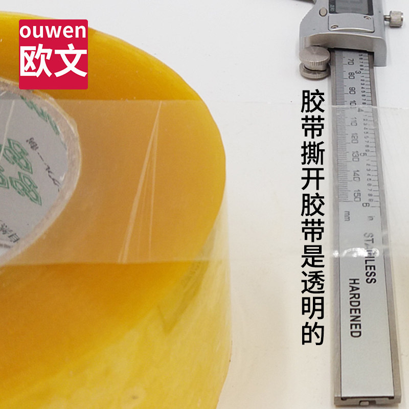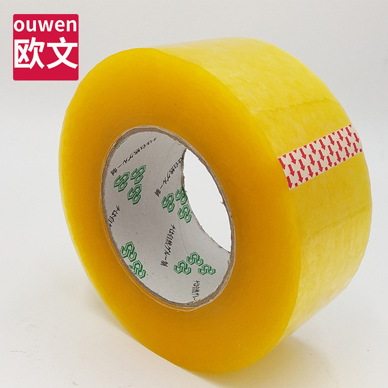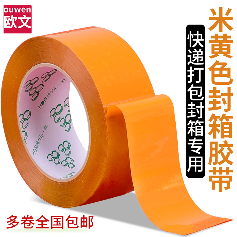 欧文透明封箱胶带大卷加厚黄色封箱胶纸强力打包固定纸箱封口胶布淘宝电商快递打包专用米黄色超大卷包装胶带