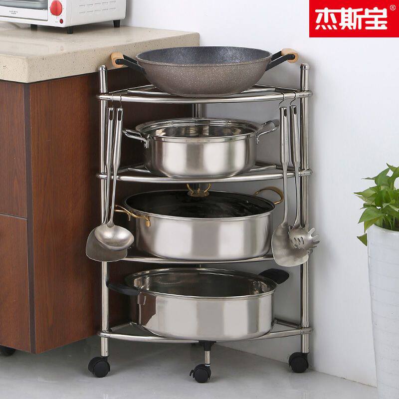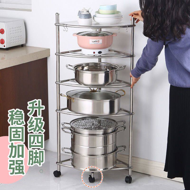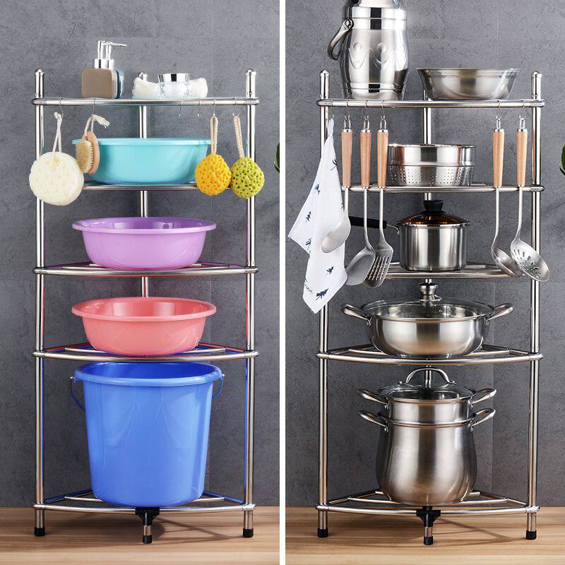 加厚不锈钢厨房置物架三角架卫生间脸盆架浴室收纳架多层落地锅架