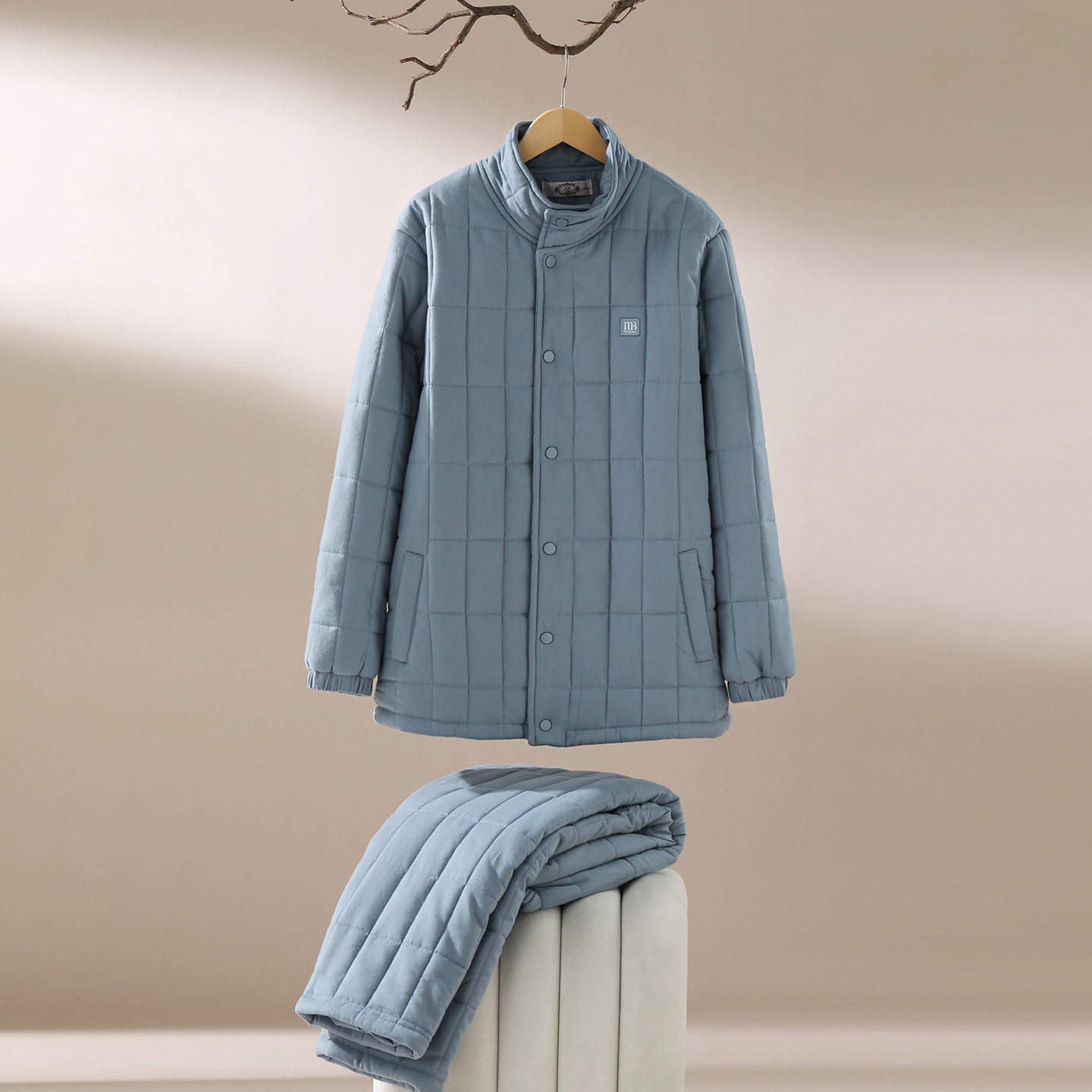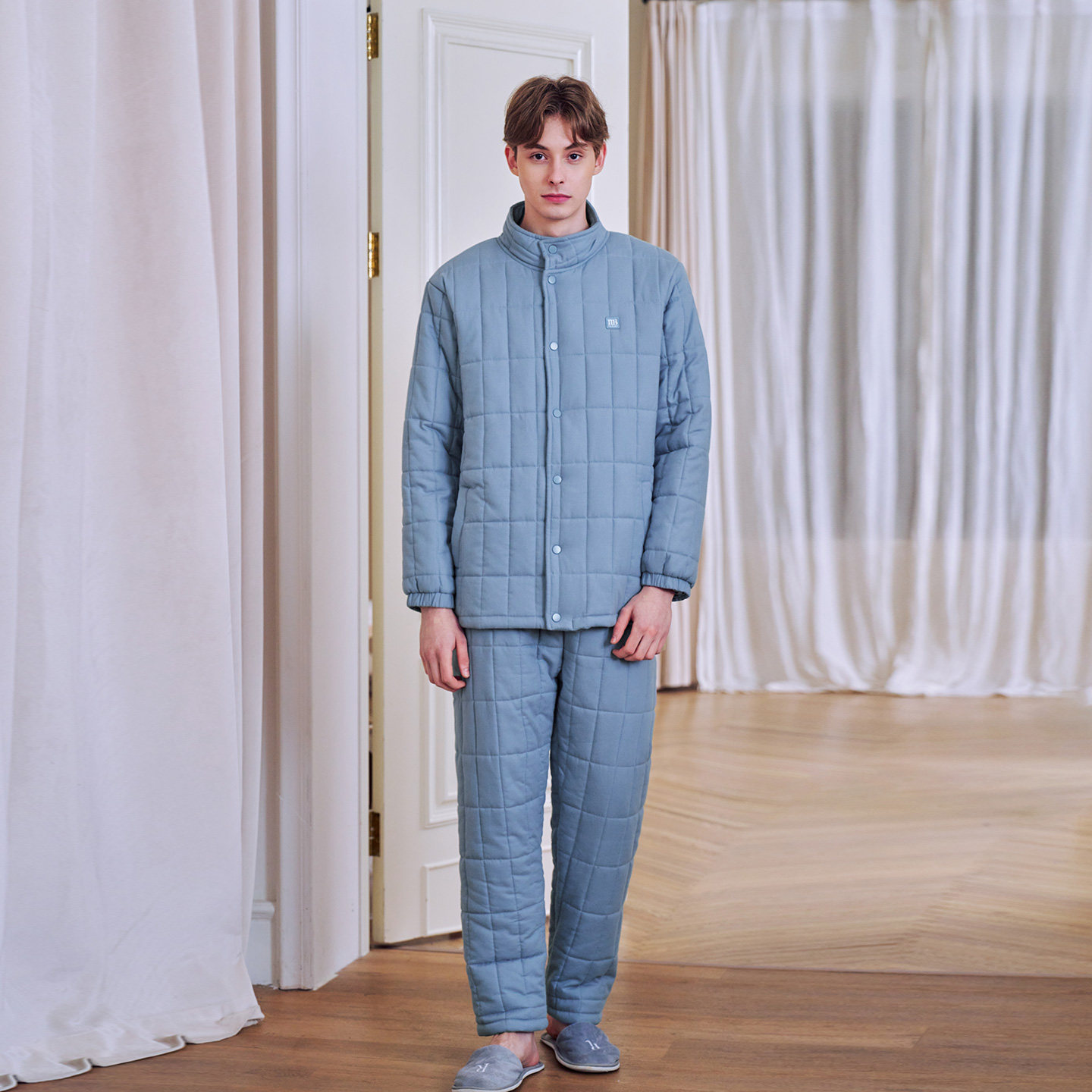 美标三层加厚夹棉纯棉睡衣套装男士秋冬全棉休闲可外穿保暖家居服