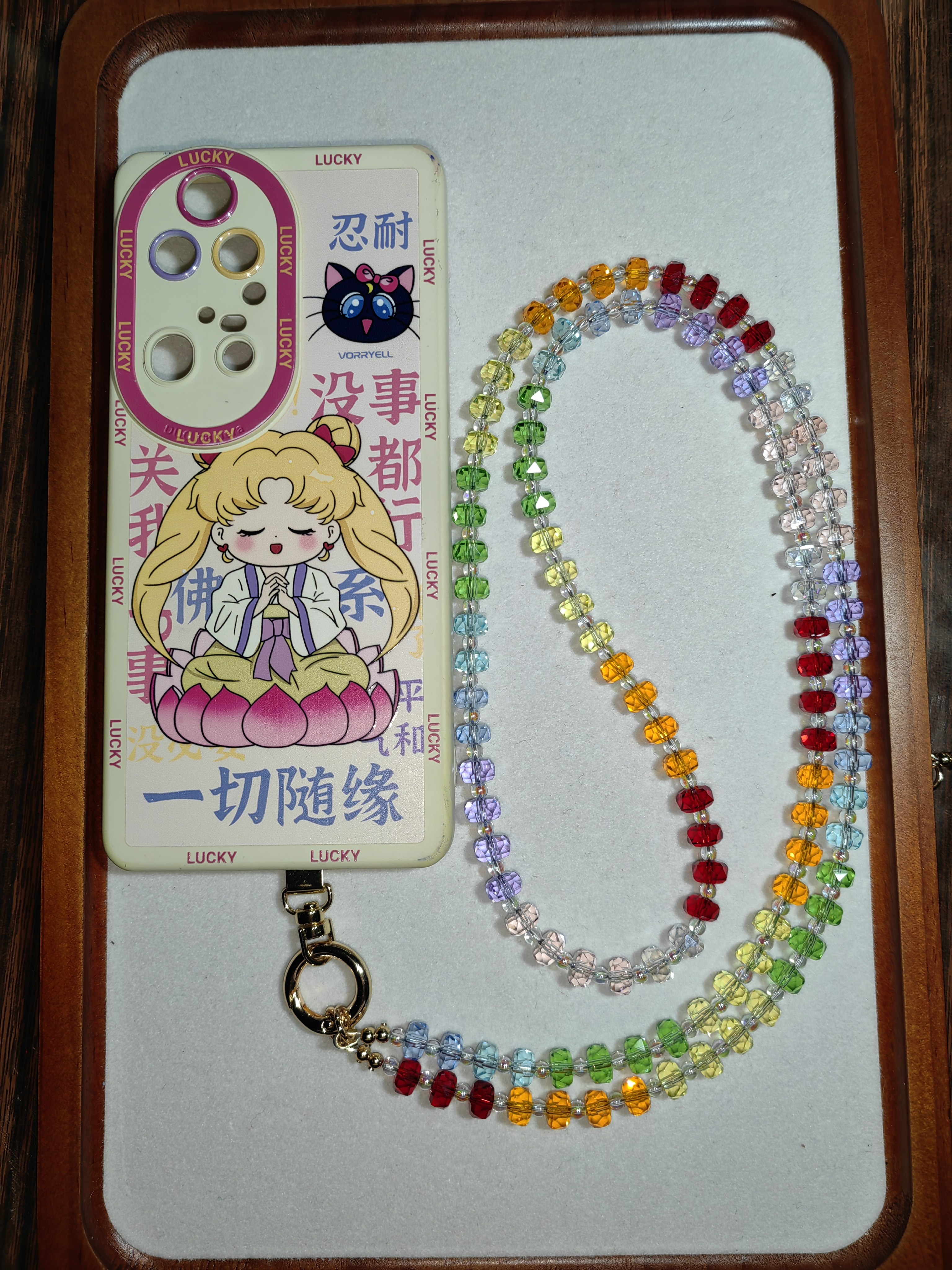 奢华高级感水晶手提链条手腕短挂绳带夹片壳钥匙扣包包挂件潮