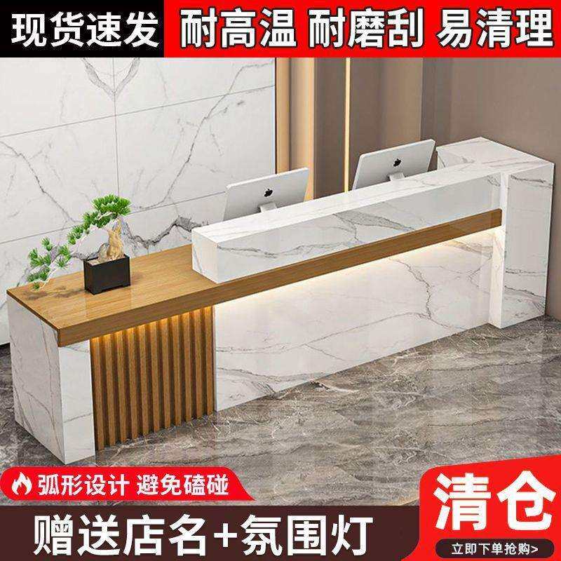 新中式公司前台接待台吧台收银台大厅小型办公桌店铺柜台现代简约
