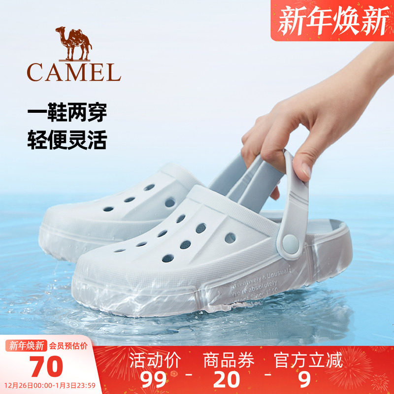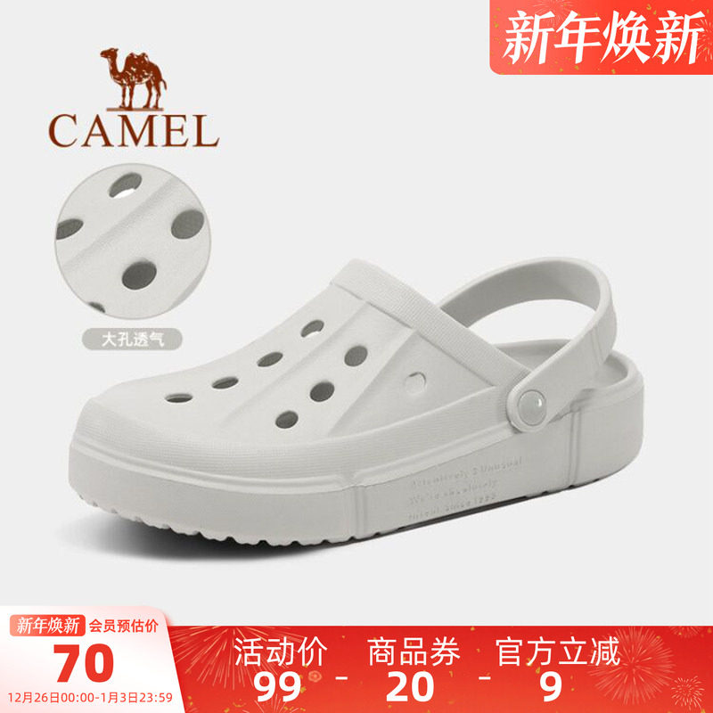 骆驼女鞋洞洞鞋踩屎感夏季款沙滩鞋女士软底防滑透气包头凉拖鞋子