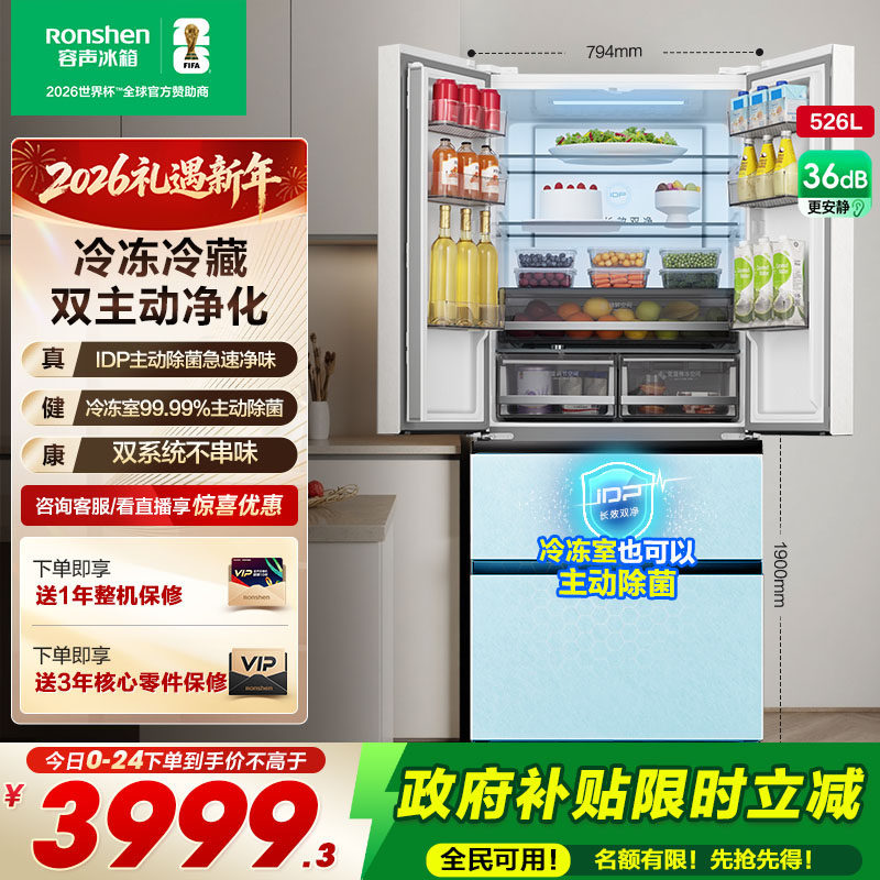 容声526pro双净双系统法式多门四开门制冰家用无霜一级能效电冰箱
