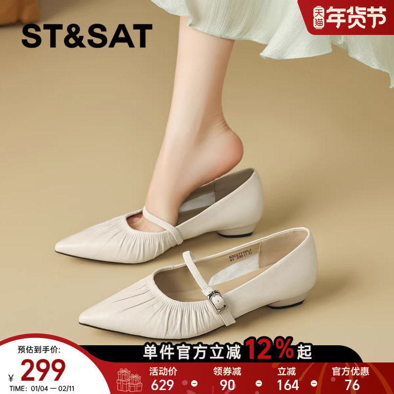 星期六法式羊皮尖头浅口单鞋女2025新款气质玛丽珍鞋通勤舒适