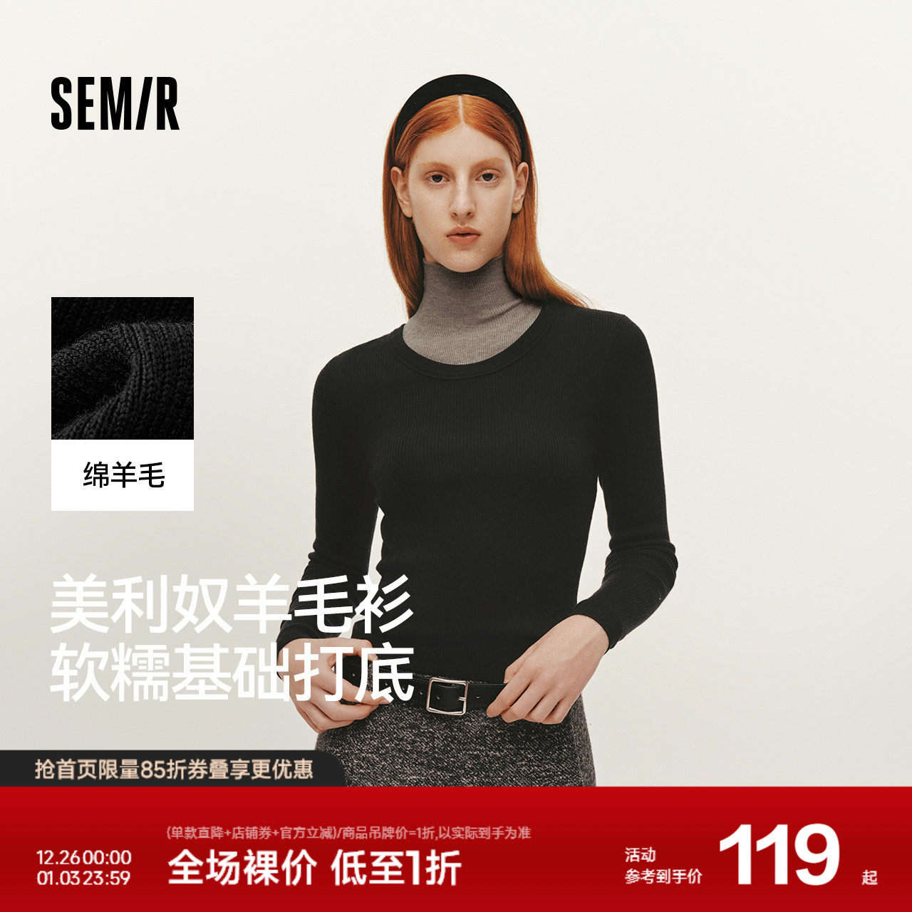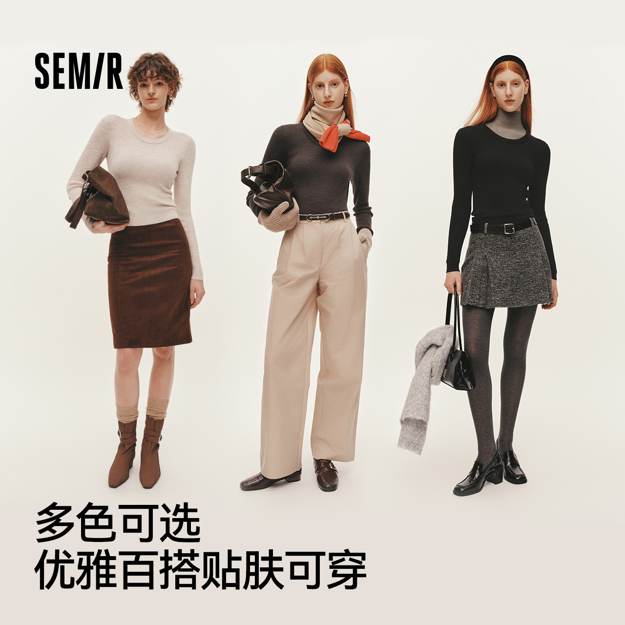 森柔|森马针织衫女冬鹅蛋领纯色紧身上衣2025新款显瘦百搭羊毛衫