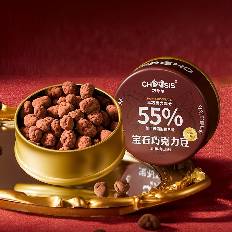 巧兮兮宝石巧克力豆山核桃味黑巧涂层坚果休闲网红下午茶小零食