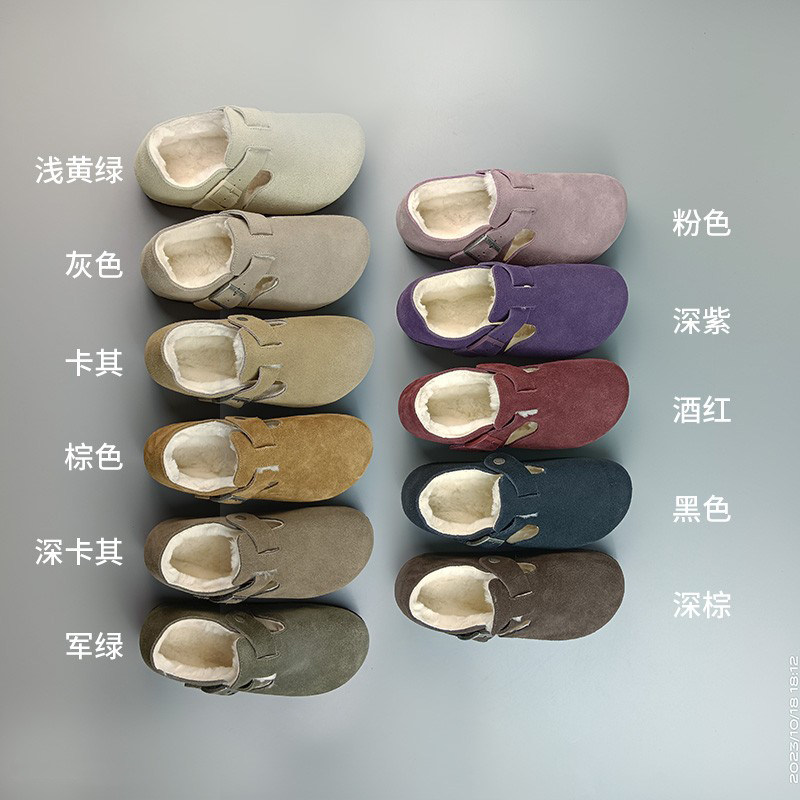 叁叔家~内增高勃肯鞋女加绒秋冬保暖毛毛半拖外穿厚底博肯鞋