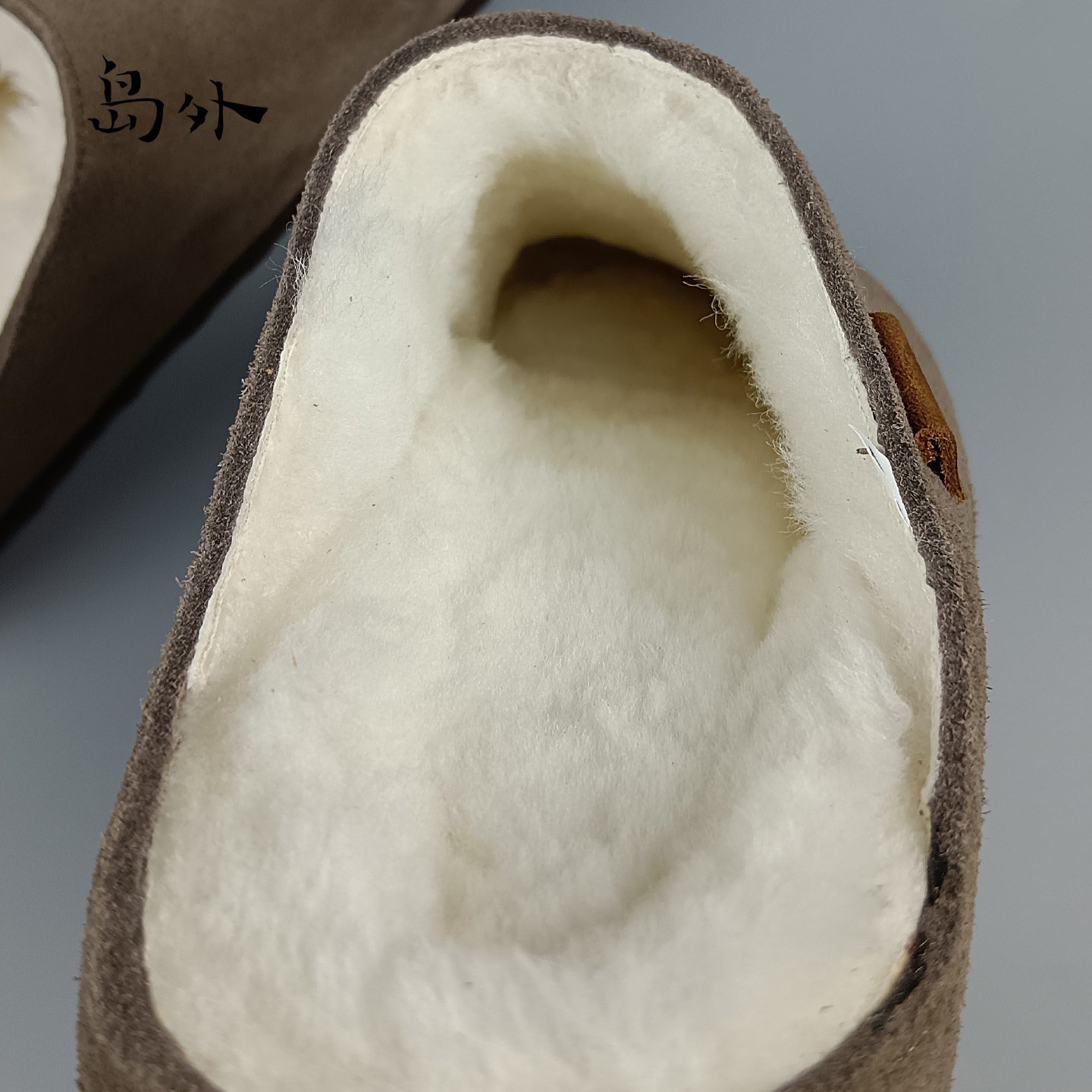 岛外勃肯鞋女包头拖鞋外穿休闲软木底懒人一脚蹬加毛加绒半包拖鞋