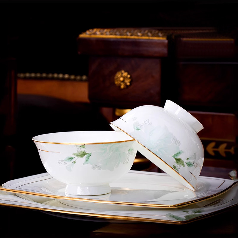 陶瓷饭碗家用2026新款高级感碗碟套装轻奢餐具骨瓷高脚吃饭碗盘子