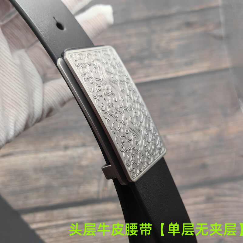 防过敏纯钛男平滑扣皮带腰带头内穿3.5板扣皮带男士真皮3.8cm裤带