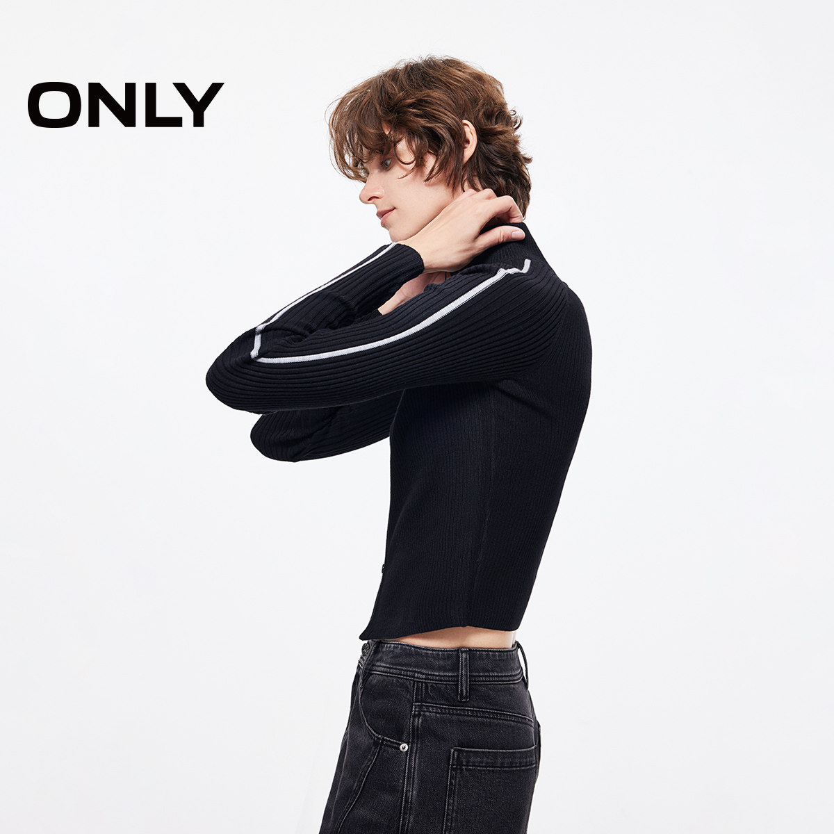 ONLY2026春季新款双向拉链刺绣字母含绵羊毛长袖针织开衫上衣女