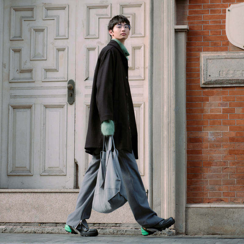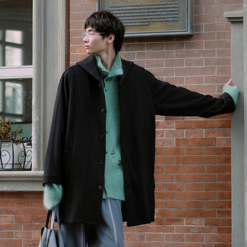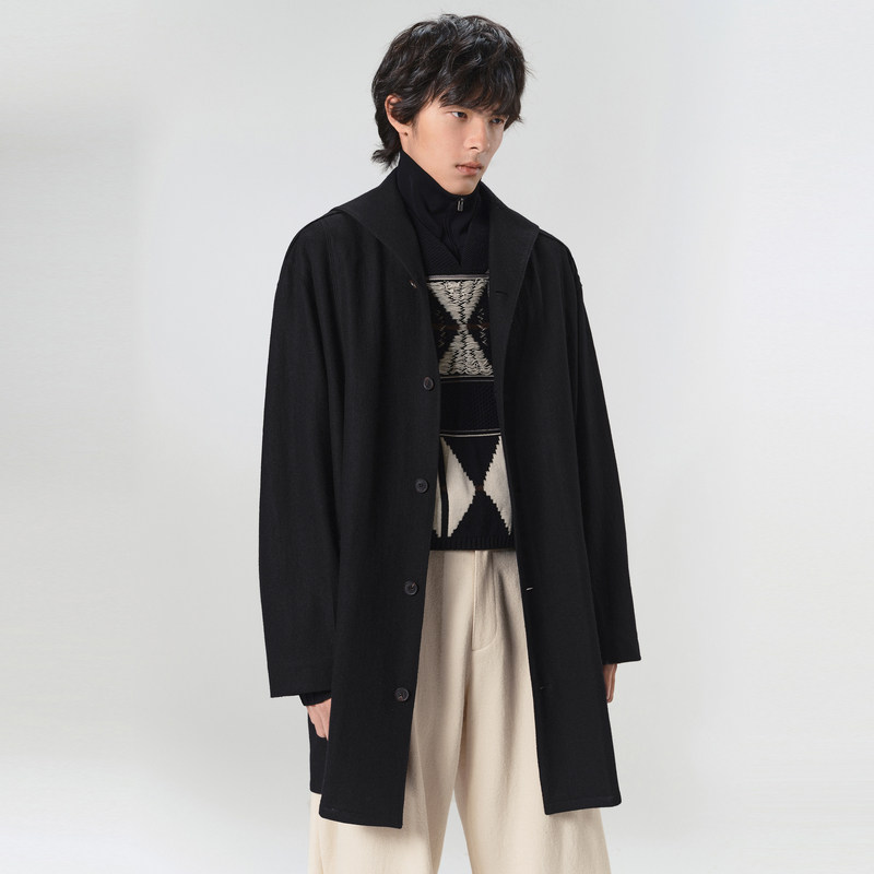 【直播专属】海上公路鲨鱼纹戗驳领毛呢大衣男士高级感长款外套