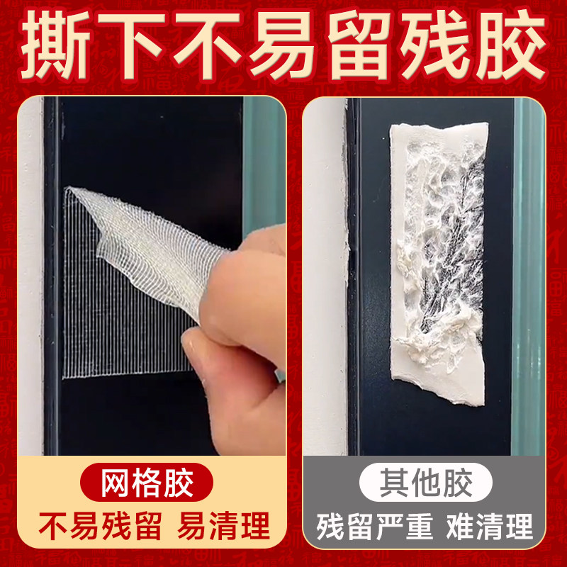 网格双面胶固定贴春联粘地毯对联专用不留痕高粘度强力胶墙面无残留贴片福字门对两面胶地板地垫拼接布基胶带