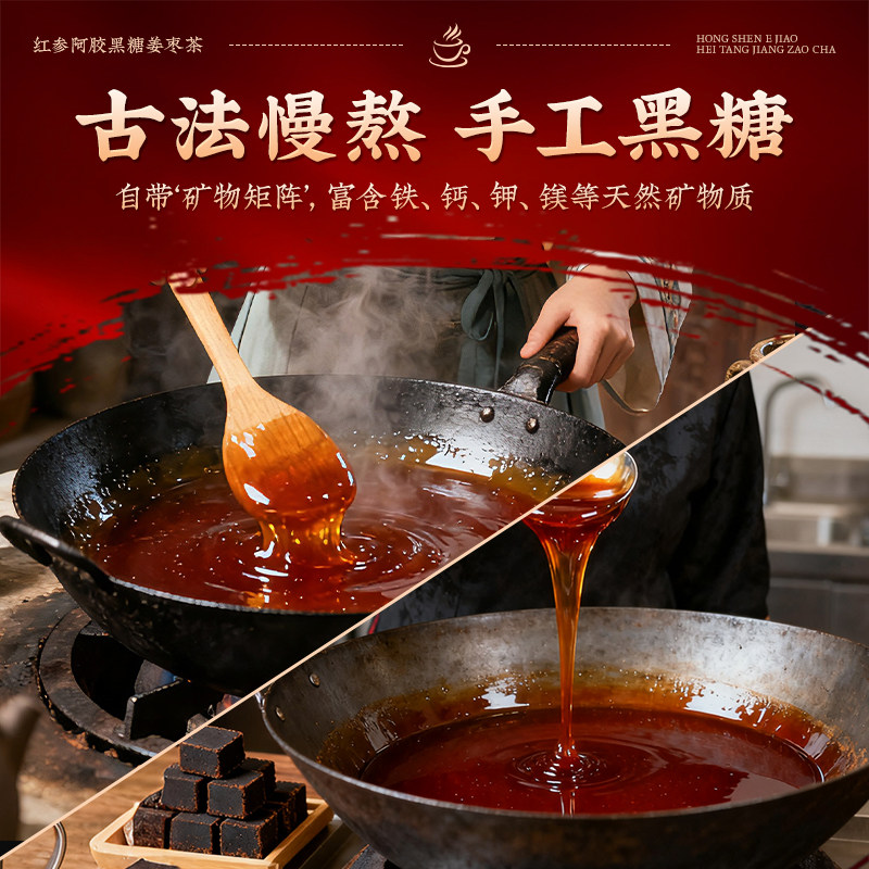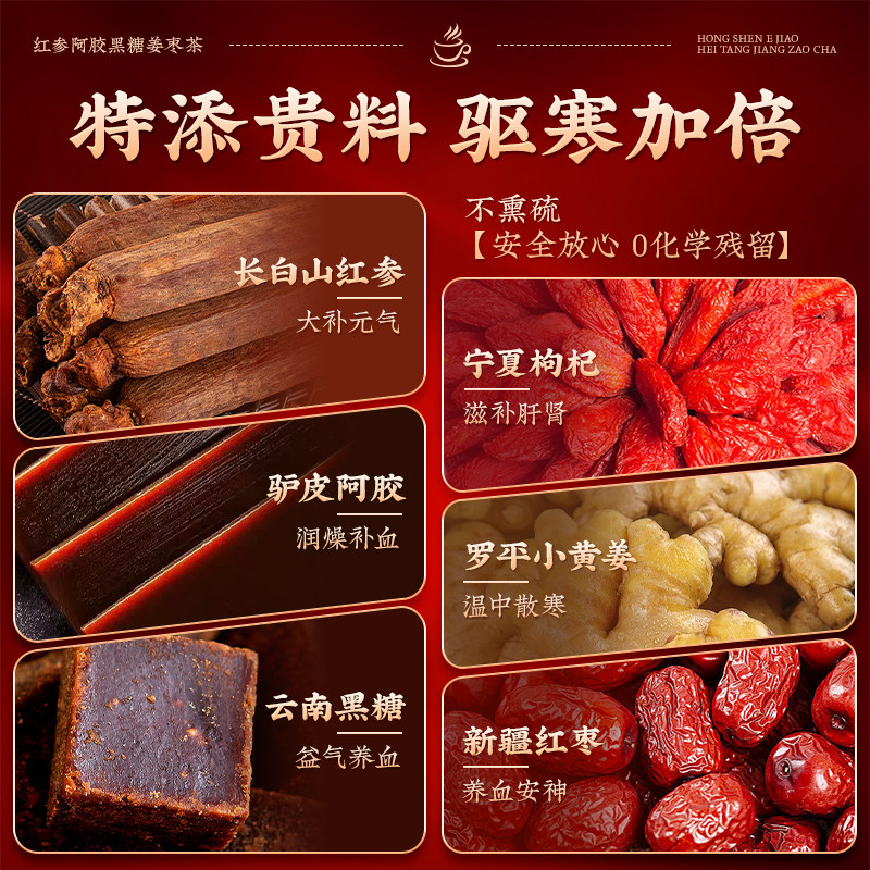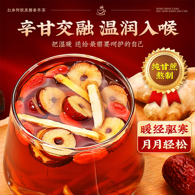 南京同仁堂红糖姜茶阿胶枣茶大姨妈宫寒调理补气血单独小包装黑糖