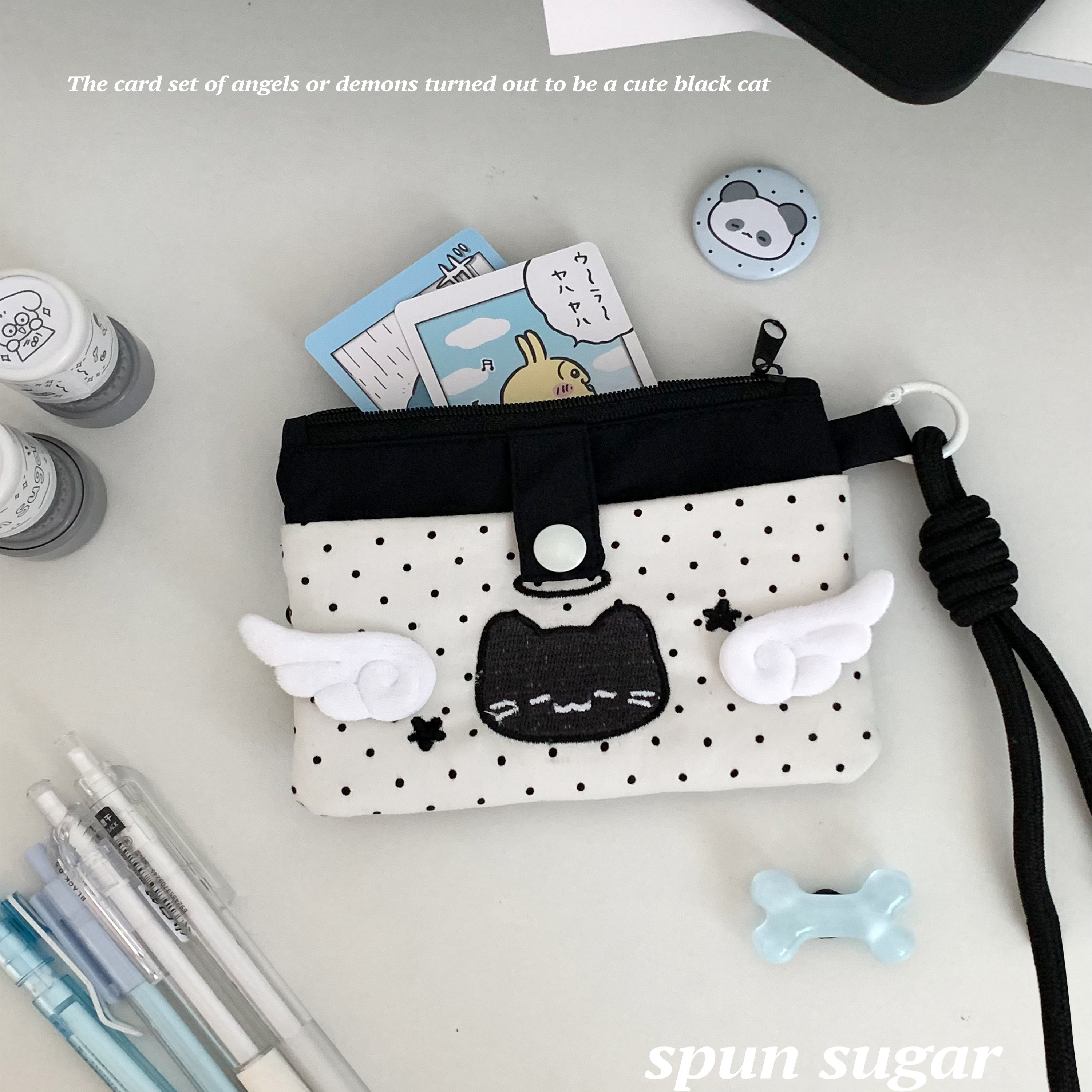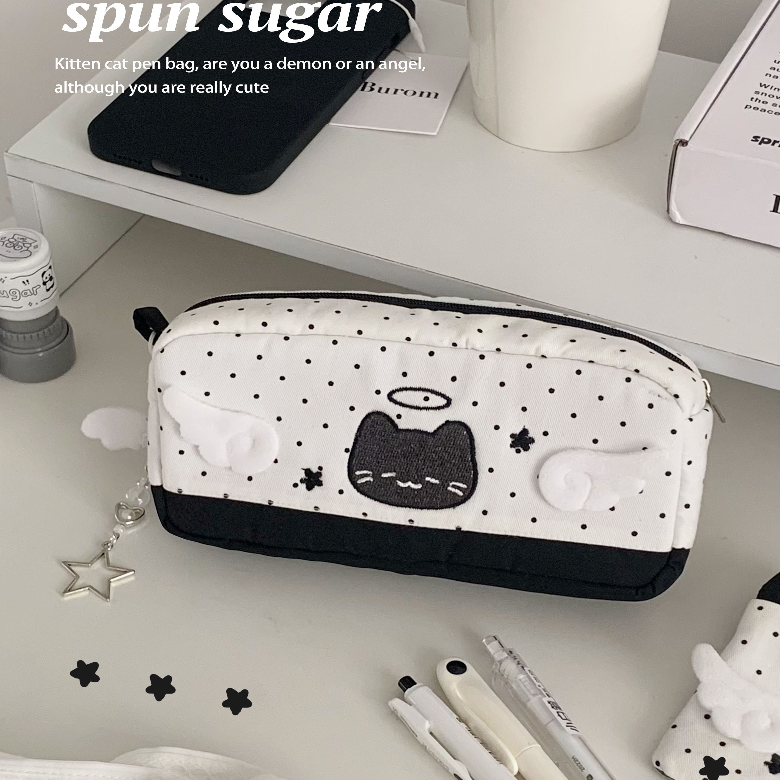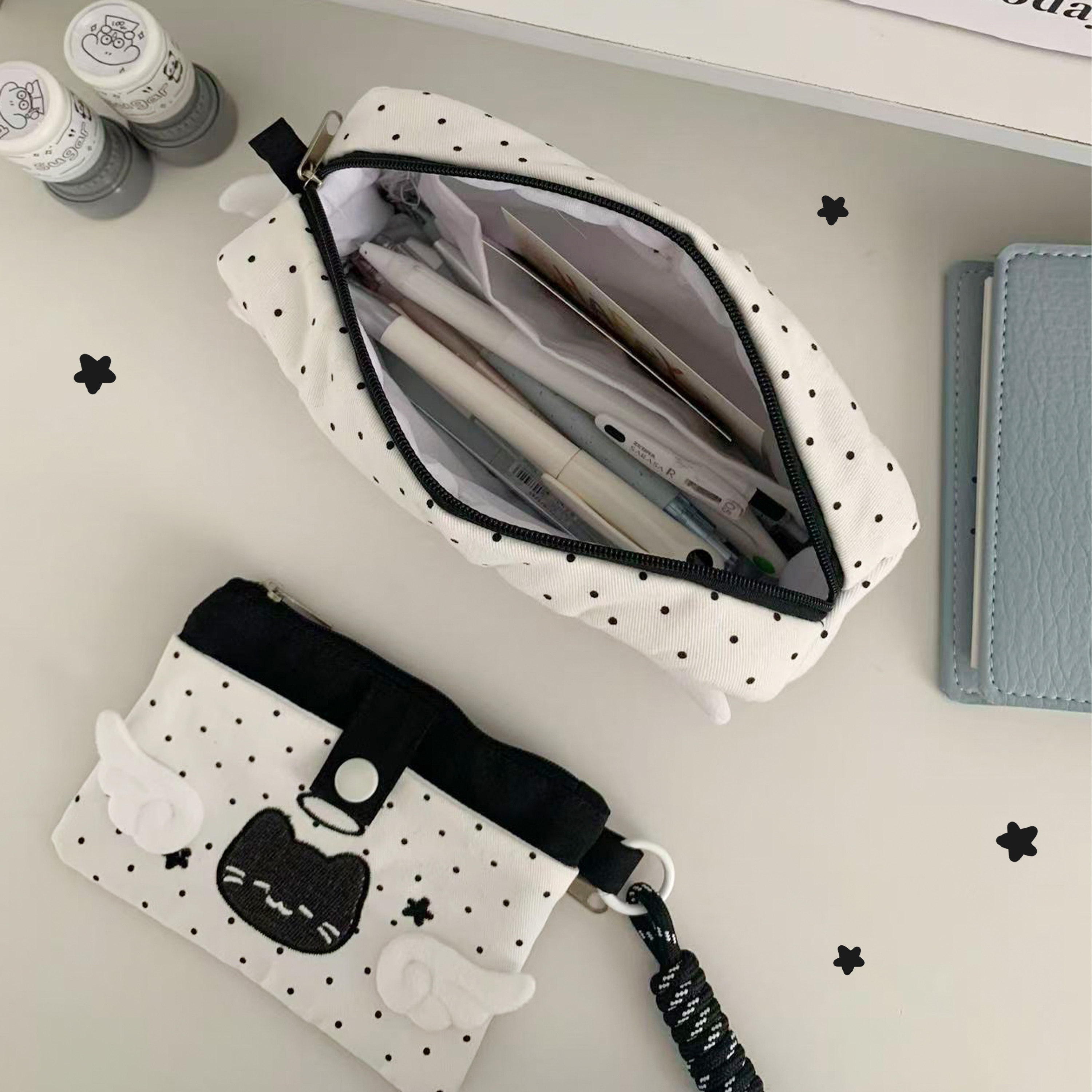 棉花加点糖原创天使黑猫波点笔袋可爱文具盒学生收纳大容量文具袋