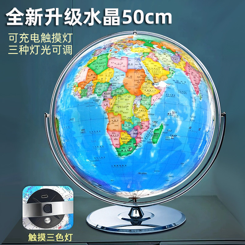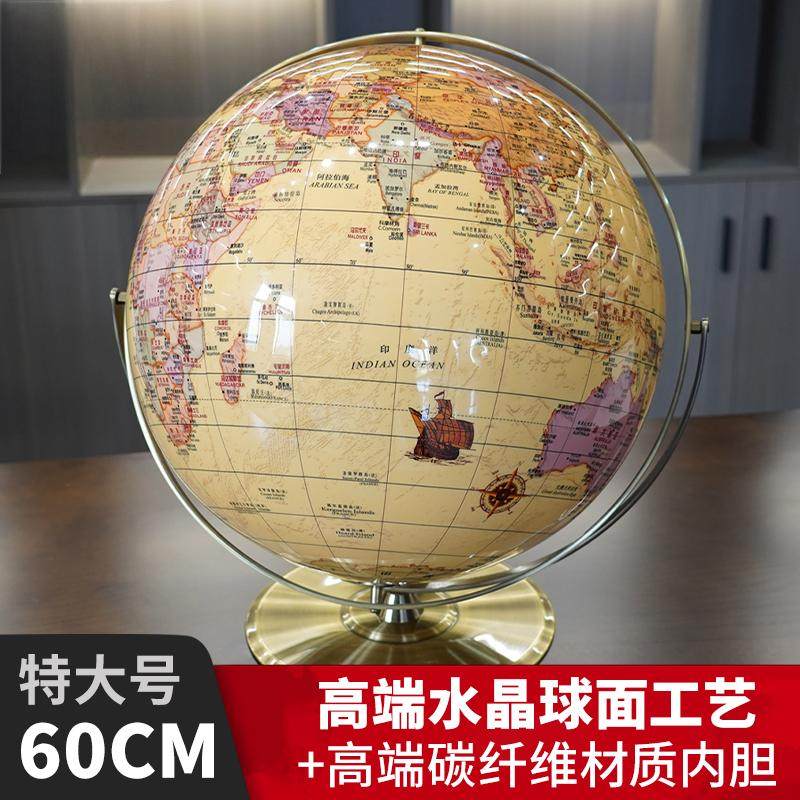 水晶金属大型50cm高端大号特大号地球仪高清万向复古政区仿古办公室客厅书房家具摆设装饰轻奢地球仪摆件