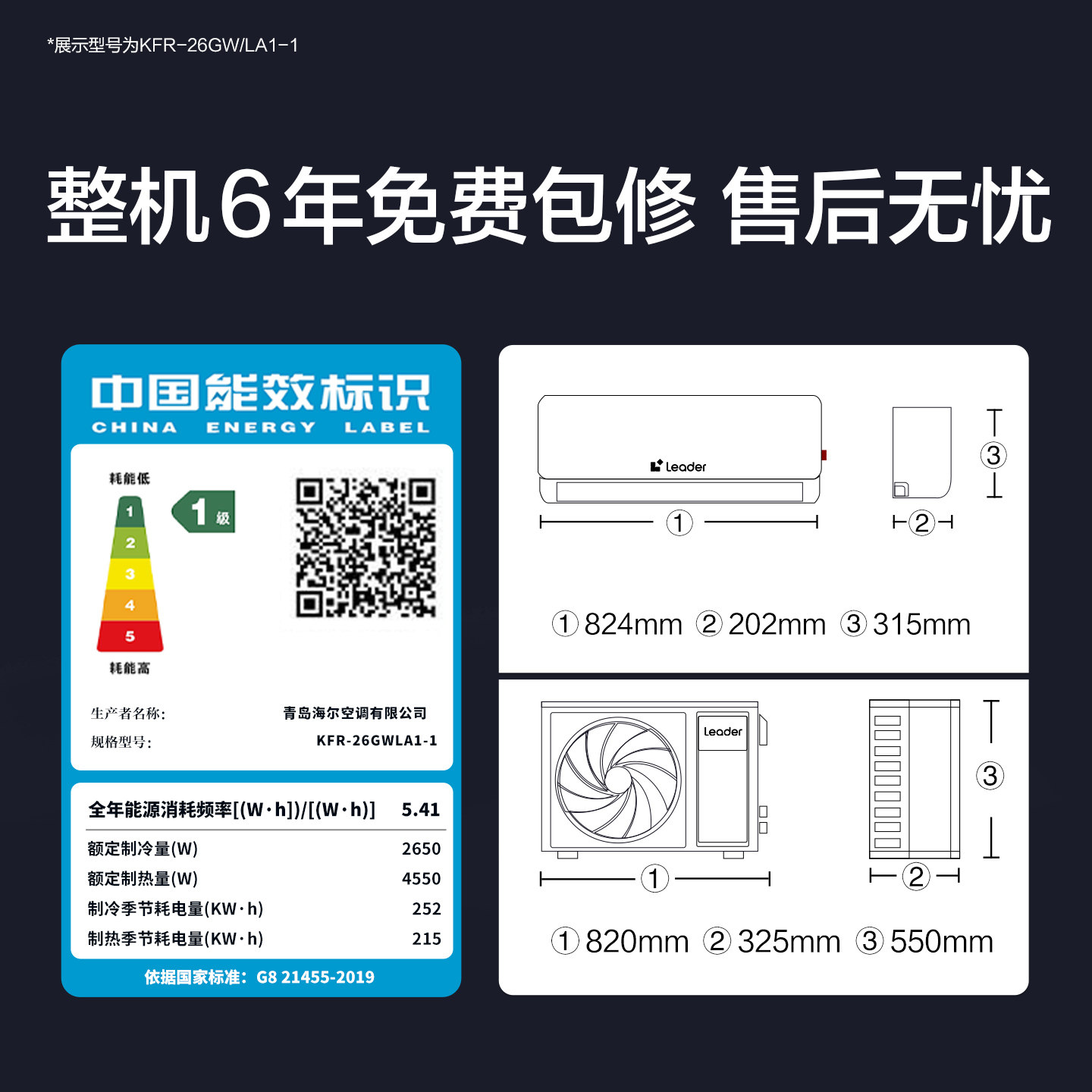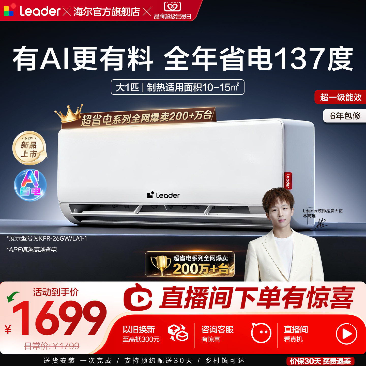 海尔空调1匹1.5匹2匹家用一级变频统帅卧室挂机冷暖省电LA1旗舰店