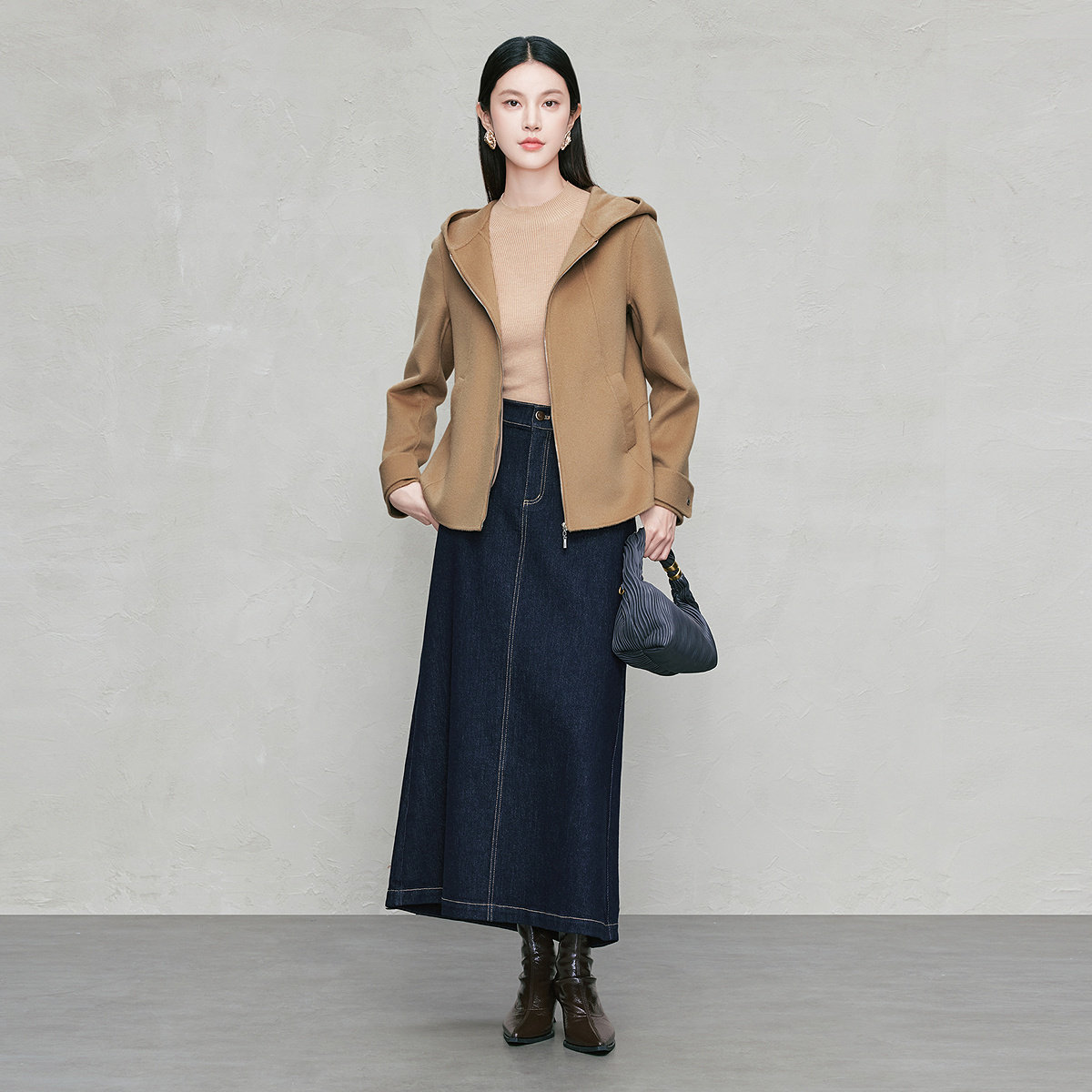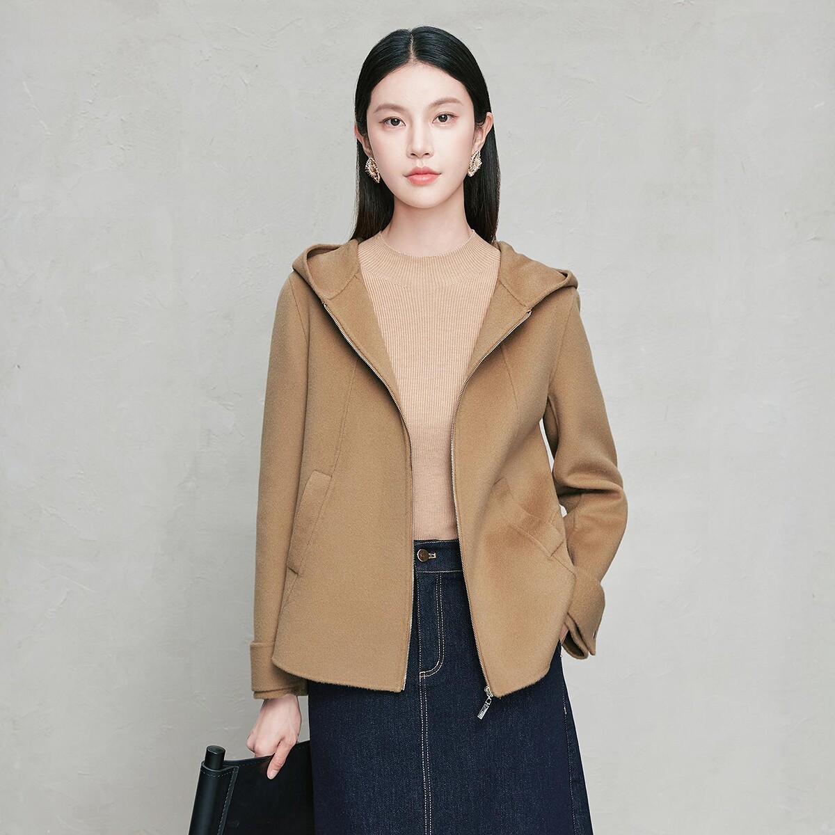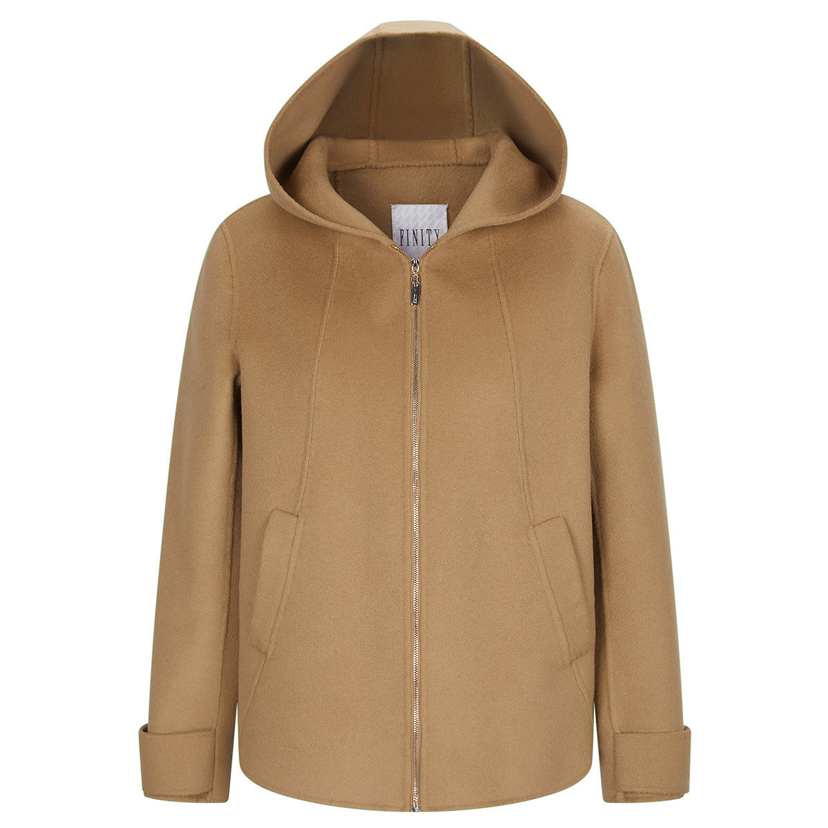 FINITY菲妮迪短外套25年秋冬新款短款连帽浅驼修身保暖羊绒大衣女