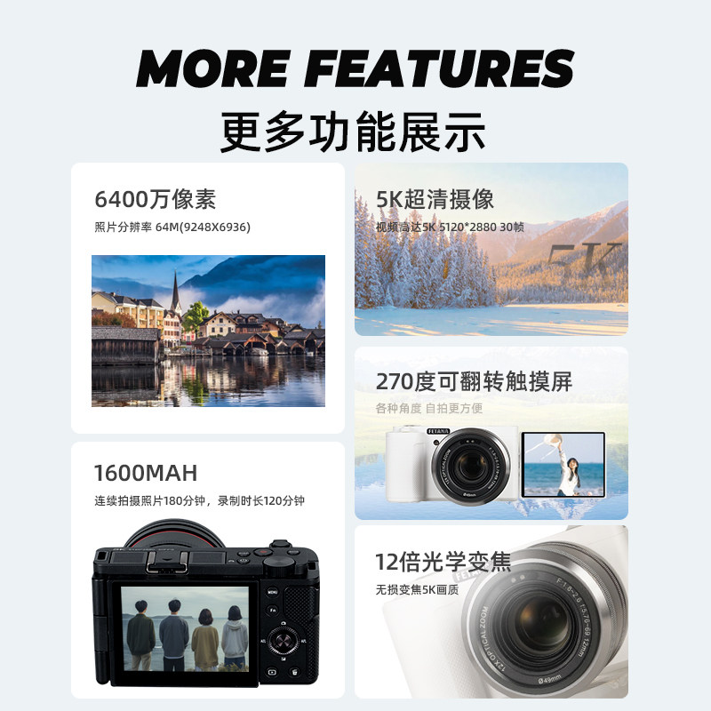 索尼传感器12倍光学变焦 5K录制 6400万像素
