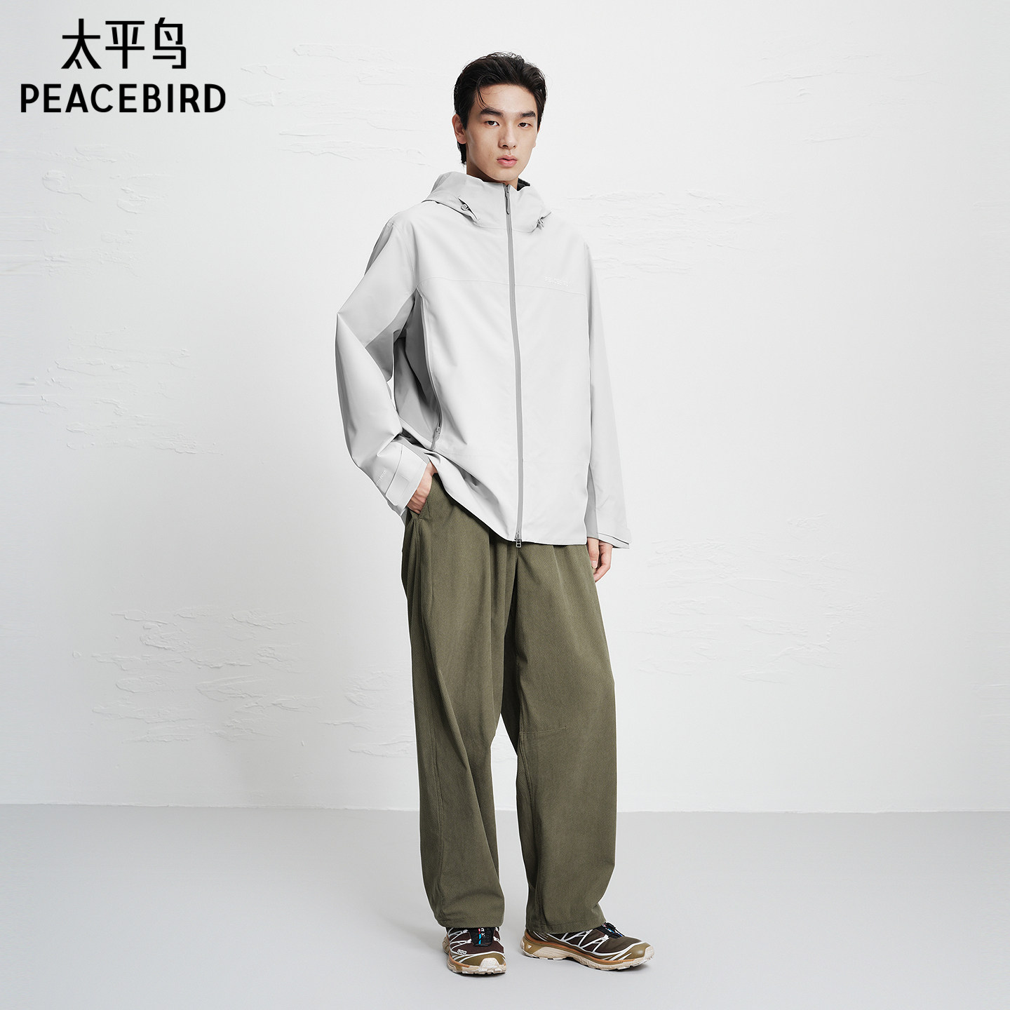 美特斯邦威男女同款夹克秋季简洁舒适防水防风运动连帽功能性外套