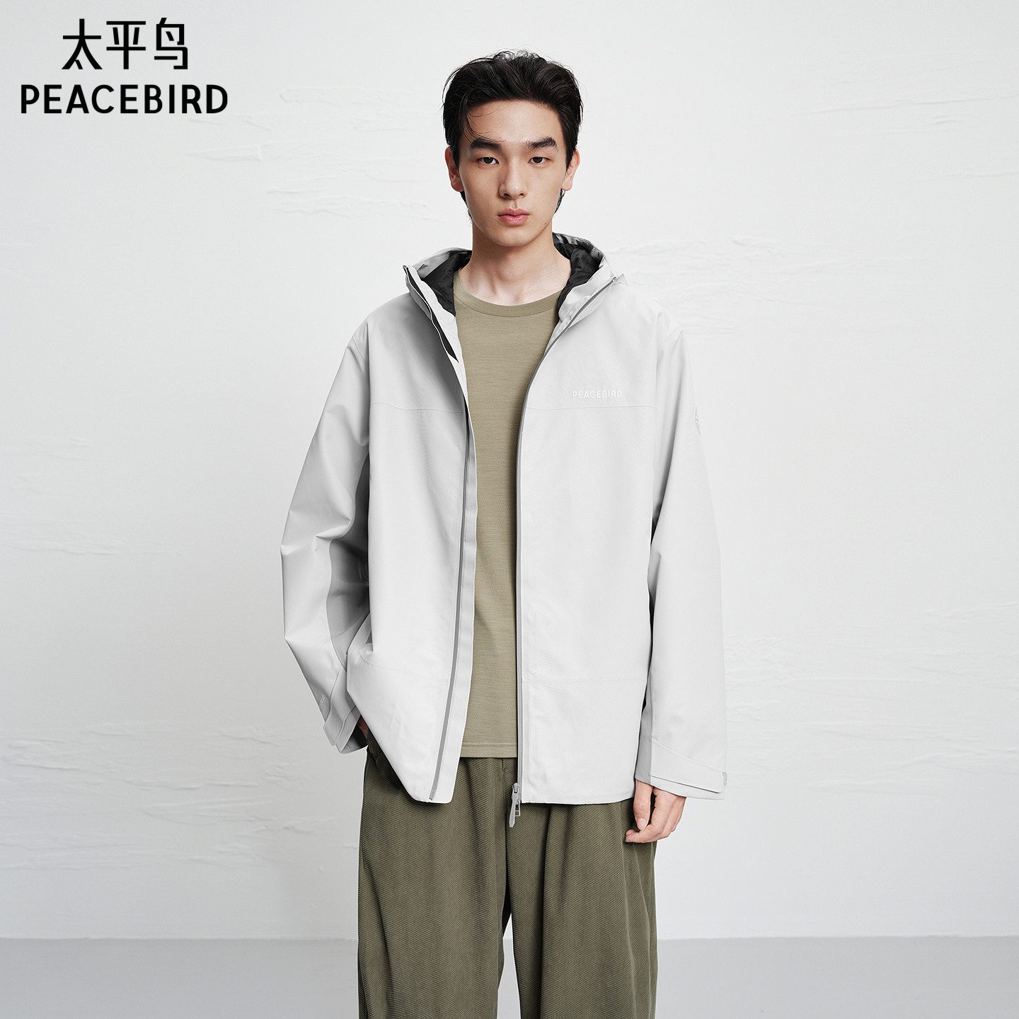 太平鸟男装 休闲夹克男士时尚茄克衫户外纯色潮流宽松男休闲夹克