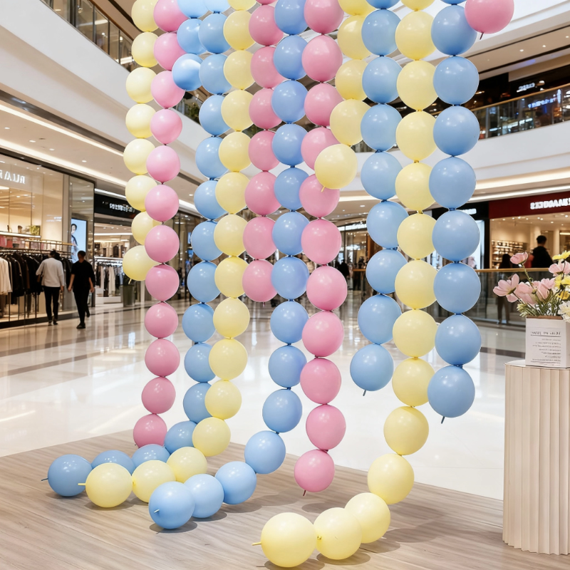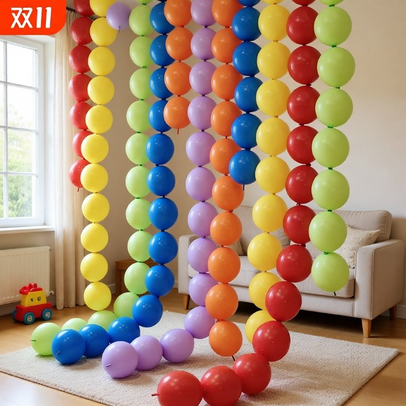 10寸尾巴球马卡龙彩色气球串生日派对装饰六一儿童节教室场景布置