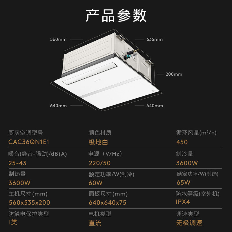 COLMO厨房中央空调N1E1专用嵌入式1.5匹隐藏嵌入式防油烟厨房专用