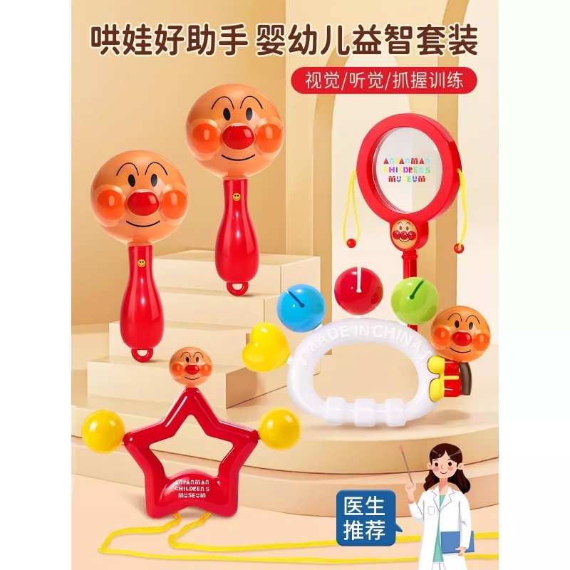 面包手摇铃超人新生婴儿玩具0到6个月3拨浪鼓宝宝抓握沙锤可啃咬