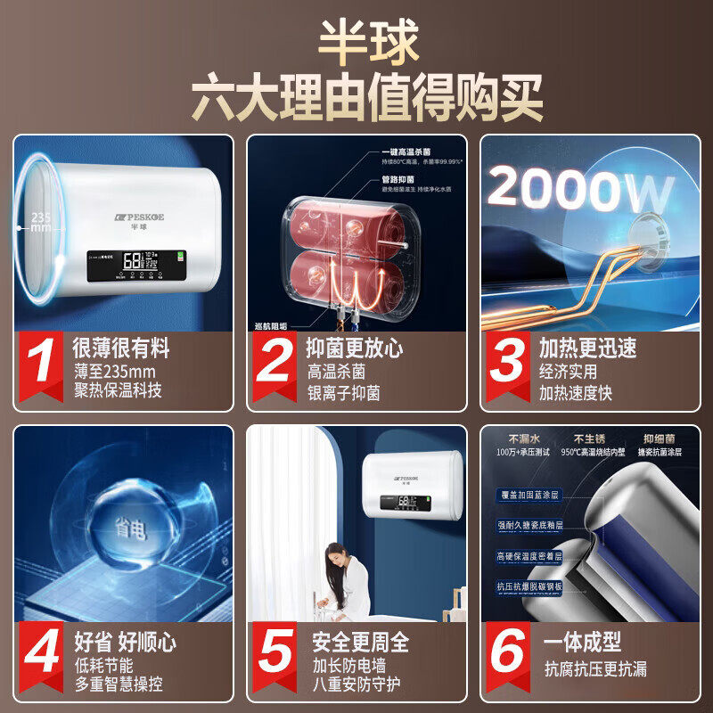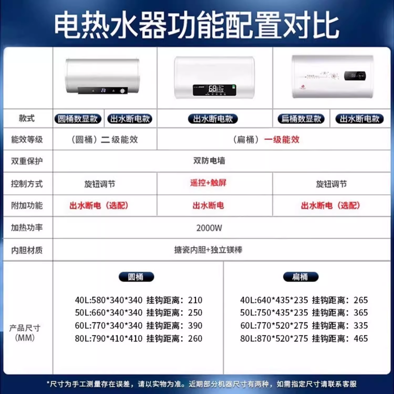 半球电热水器家用省电储水式小型40升卫生间洗澡出租房扁桶50升