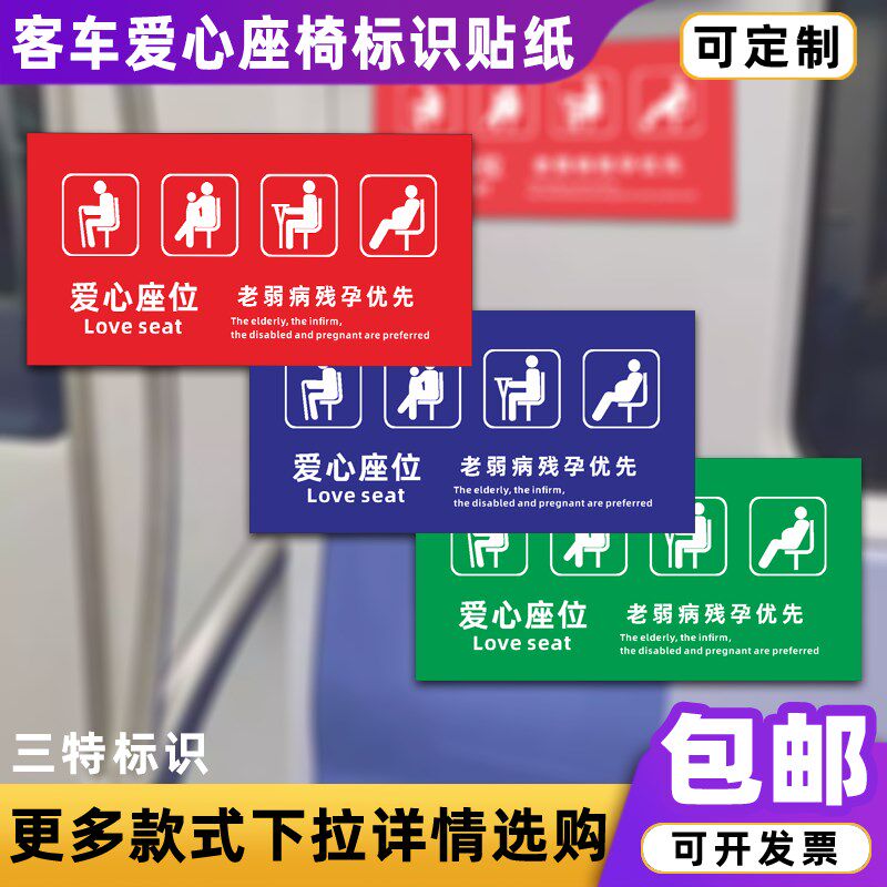 客车爱心座椅标识贴纸老弱病残孕优先温馨提示贴纸定制