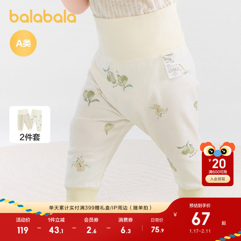 巴拉巴拉童装婴儿裤子下装两件装秋2025新款宝宝衣服高腰护肚舒适