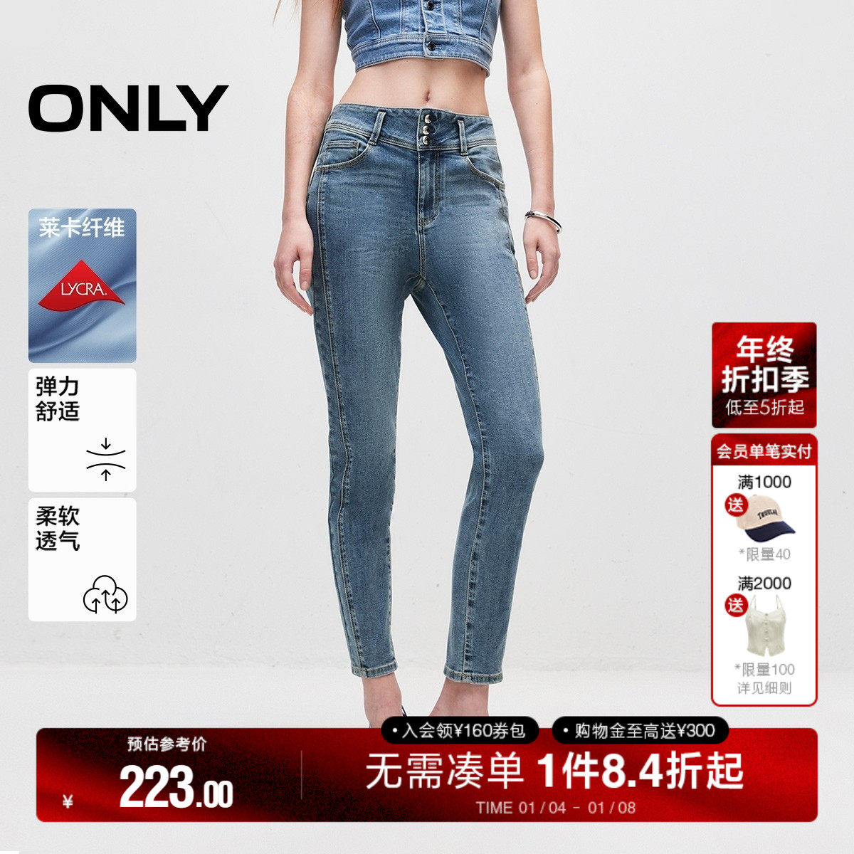 ONLY冬季休闲侧缝前移高腰显瘦蜜桃臀小脚裤紧身裤九分裤牛仔裤女