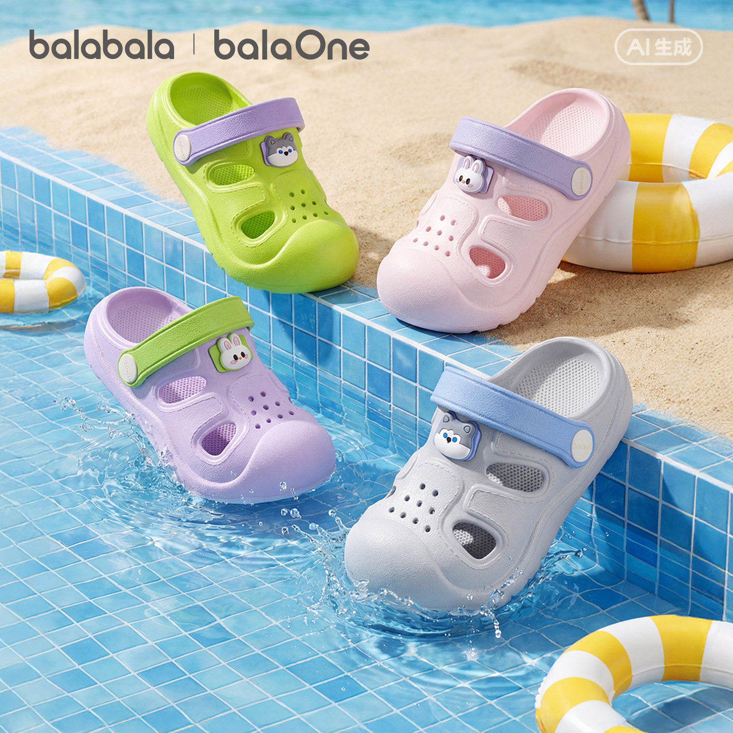 【蜜蜂心愿社】巴拉巴拉儿童拖鞋可拆卸甜美蝴蝶结洞洞鞋