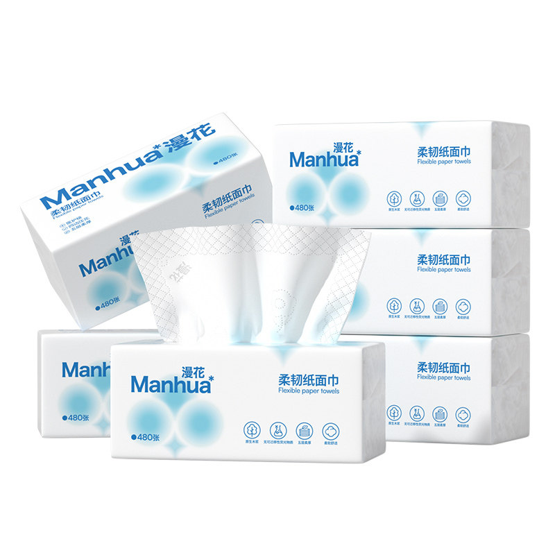 漫花原生木浆抽纸整箱批发实惠装家用餐巾纸面巾纸四边压花卫生纸