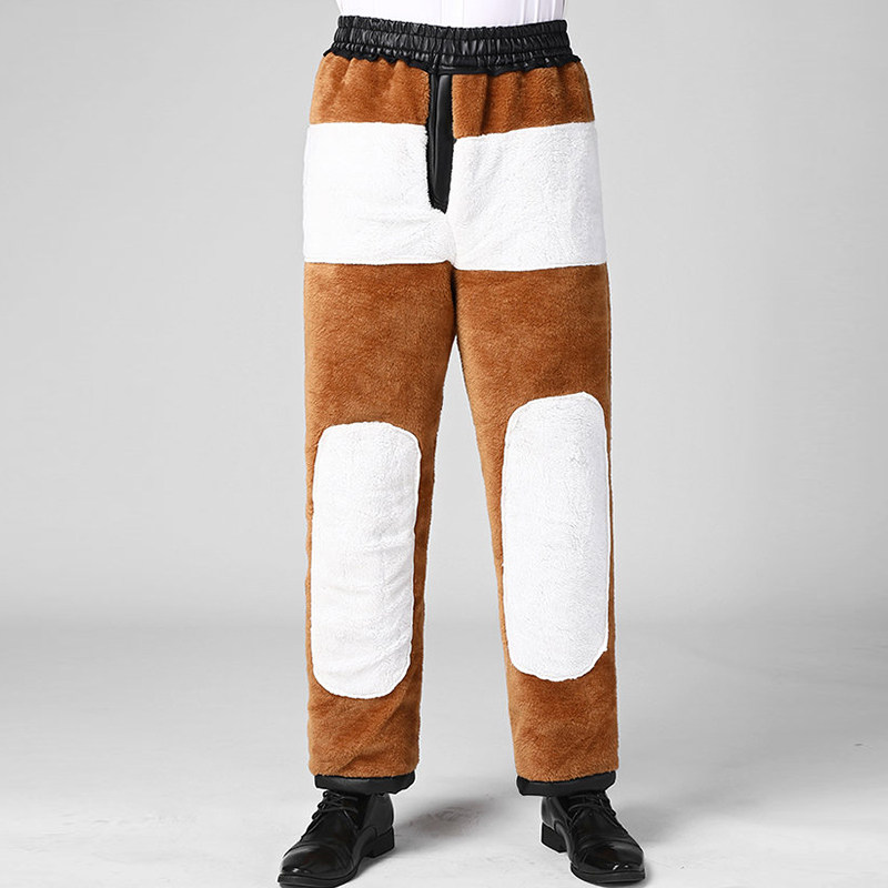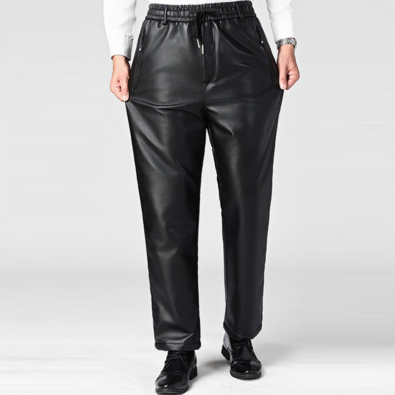 中老年冬季皮裤男加绒加厚宽松保暖骑行代驾防风防水中年棉裤长裤