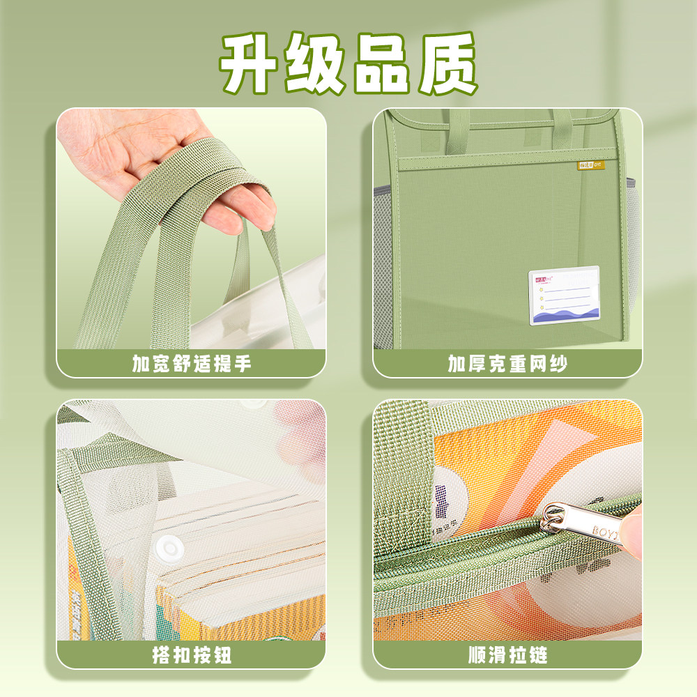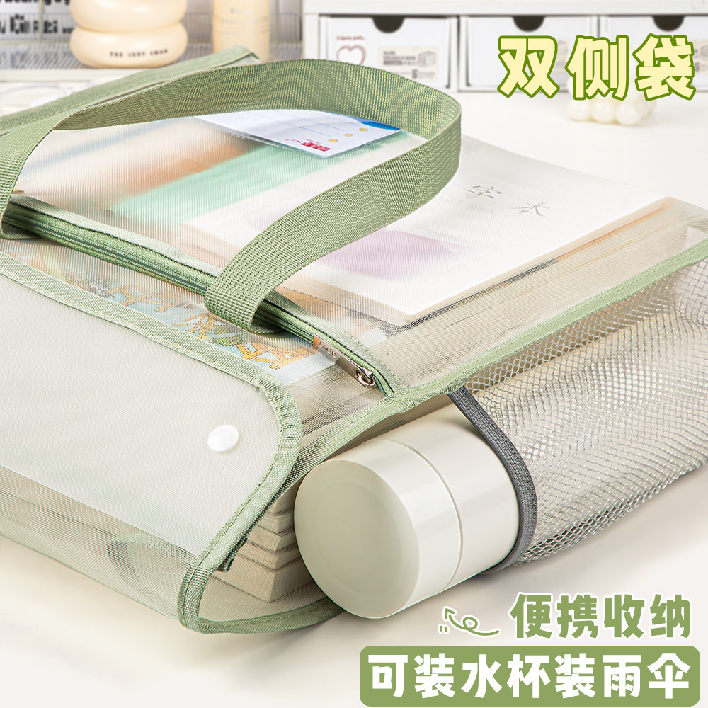 学生拎书补习袋加厚手提袋大容量文件试卷袋翻盖式拉链式透明网纱考试专用文件收纳袋科目袋高颜值书包补课袋