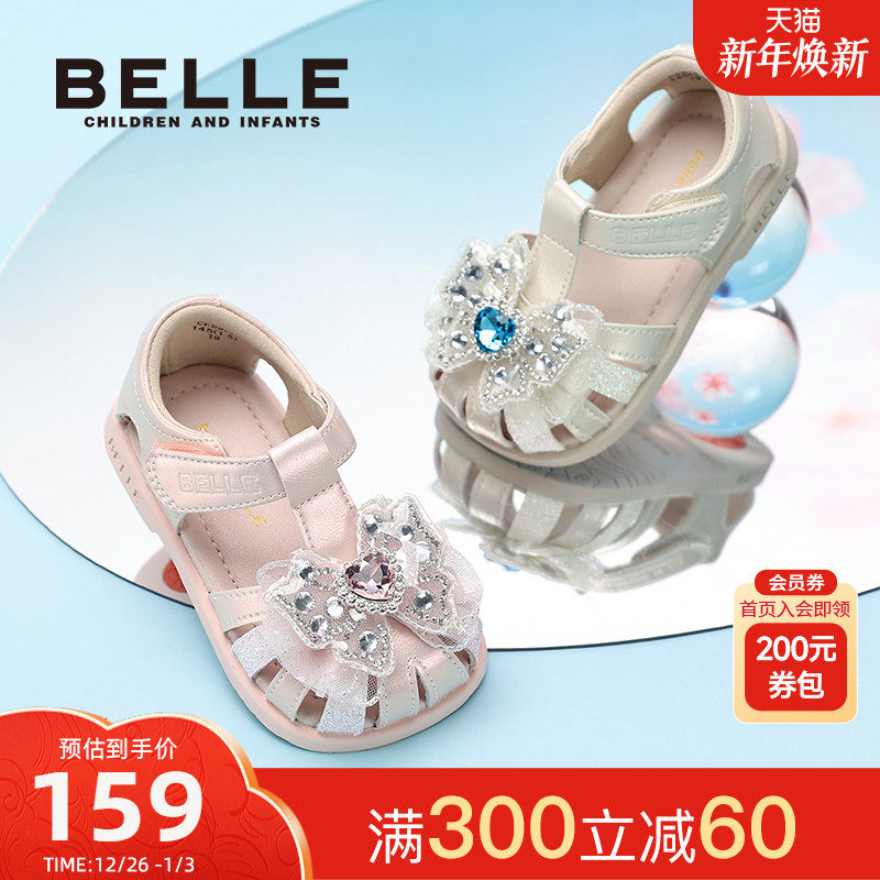 百丽学步凉鞋爱莎水晶女宝2025新款学步鞋夏季女童公主鞋包头软底