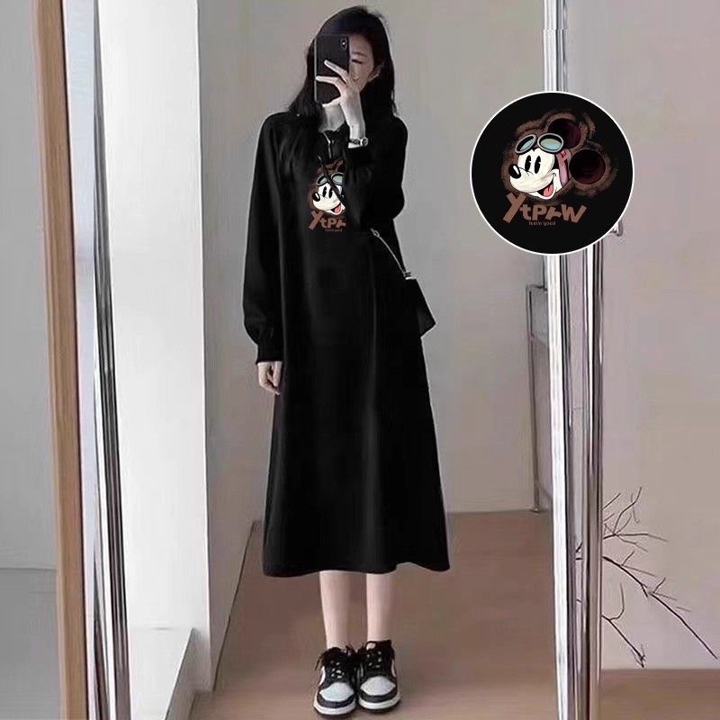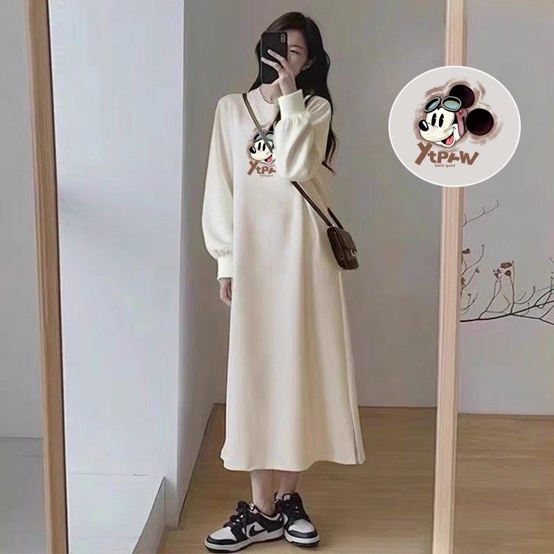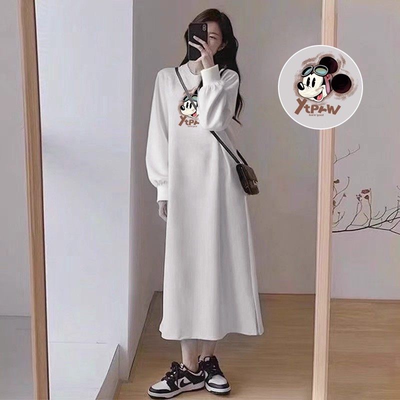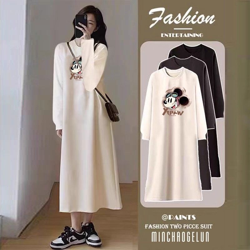 孕妇装连衣裙秋冬季侧开叉纯棉长袖T恤裙孕妇裙宽松大码遮肚子